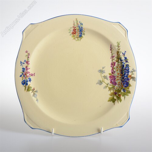 Vintage New Hall Hanley Staffs ceramic cake plate beautifully decorated with Delphiniums, in muted colours of blues and mauves. Excellent Condition. Dia 24cm-27cm. Rim. H. 1cm. Dia 15cm. Base.The price includes free postage via Royal Mail Signed For delivery to the UK mainland destinations.