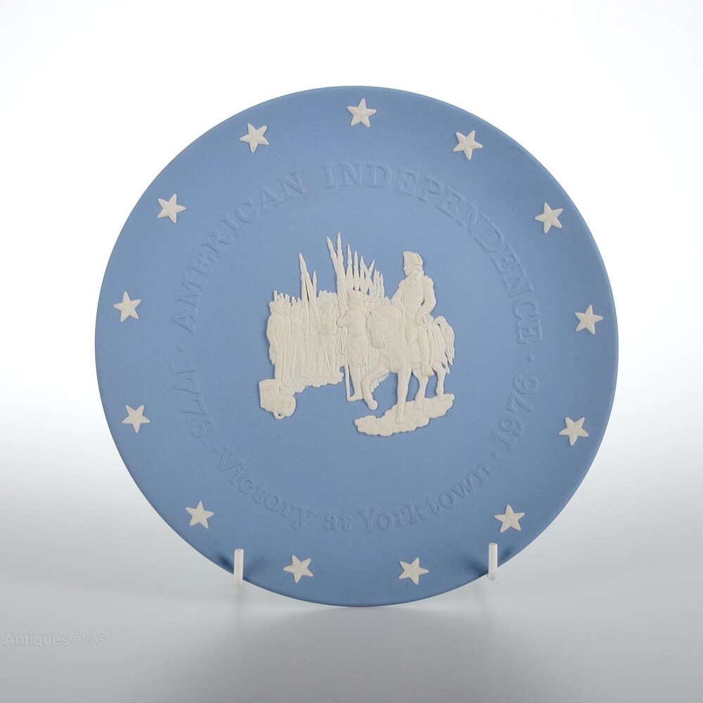Vintage Wedgwood Jasper blue plate celebrating American bicentennial. The celebration of the victory at Yorktown independence 1776-1976. Excellent Condition. H. 2cm. Dia 20.25cm. Rim. Dia 12cm. Base.The price includes free postage via Royal Mail Signed For delivery to the UK mainland destinations.