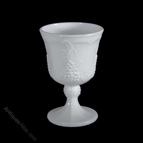 Vintage Westmoreland milk glass goblet in the grape and ivy pattern, dating between 1930s-1950s. Made in USA. Excellent Condition. H. 13.5cm. Dia 9cm. Rim. Dia 7.75cm. Base.The price includes free postage via Royal Mail Signed For delivery to the UK mainland destinations.