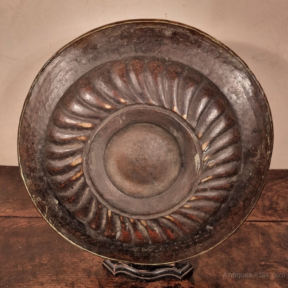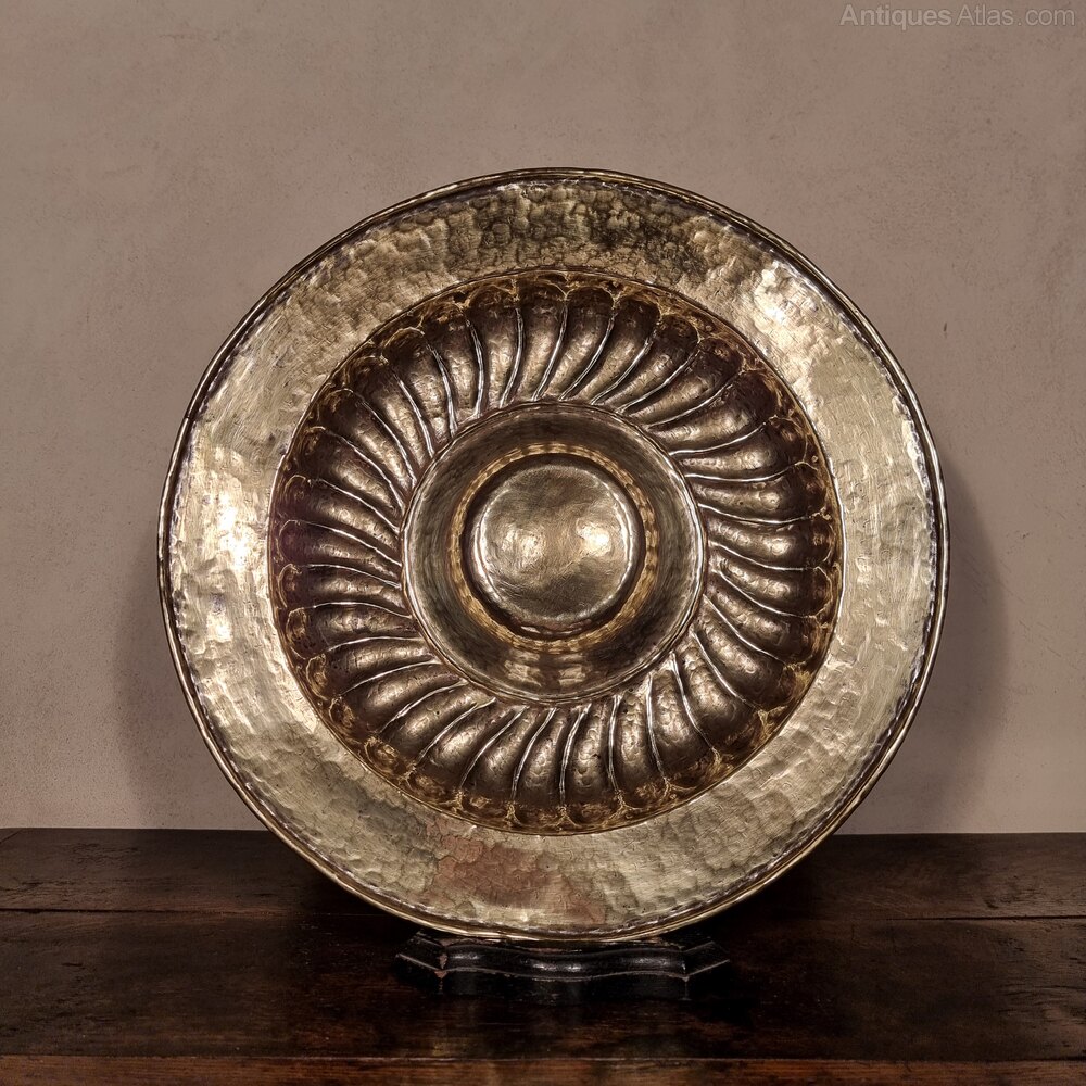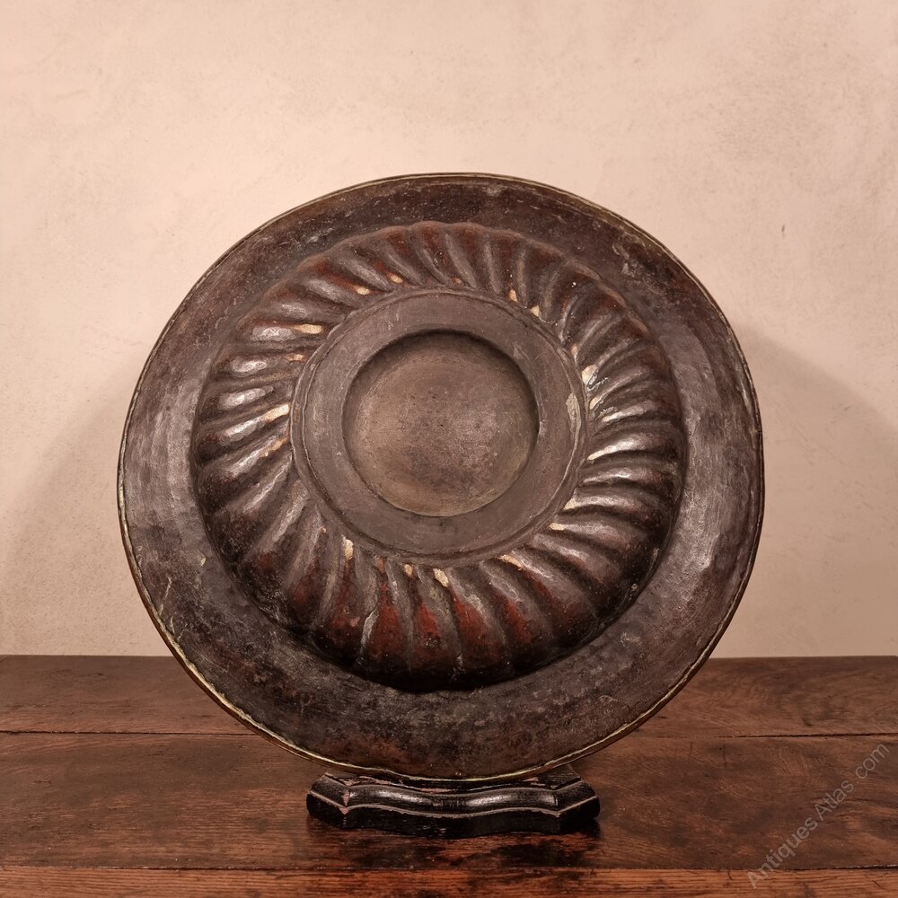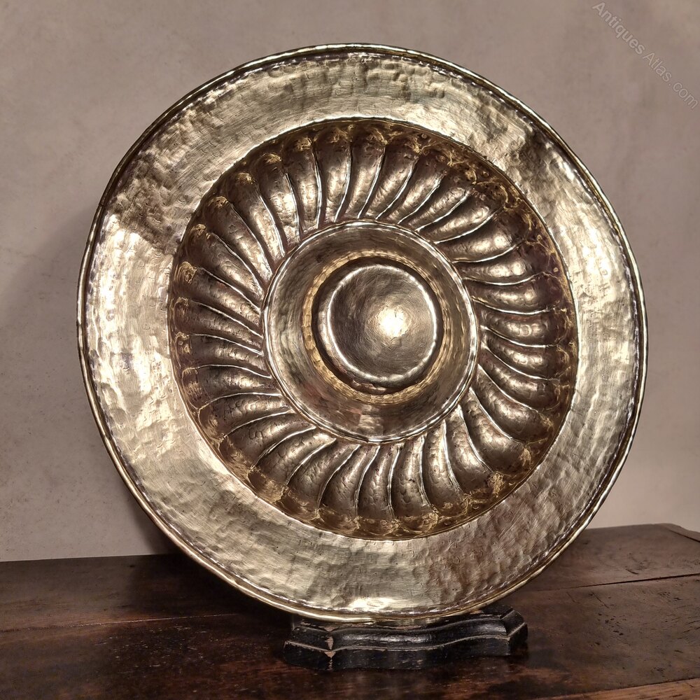 A late 16th - early 17th century hammered brass alms dish, with central raised boss surrounded by inverted gadrooning. The dish has a lovely polished finish with a cruddy untouched back, its in good condition and would make an excellent addition to your collection.Measurements