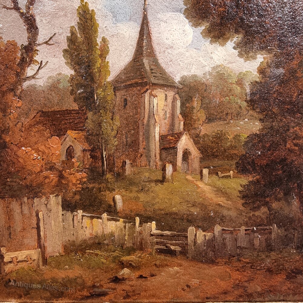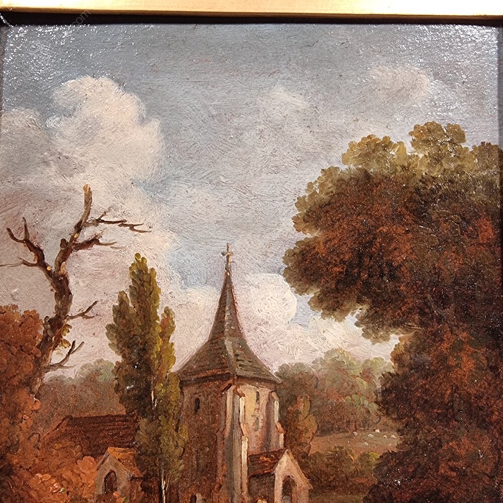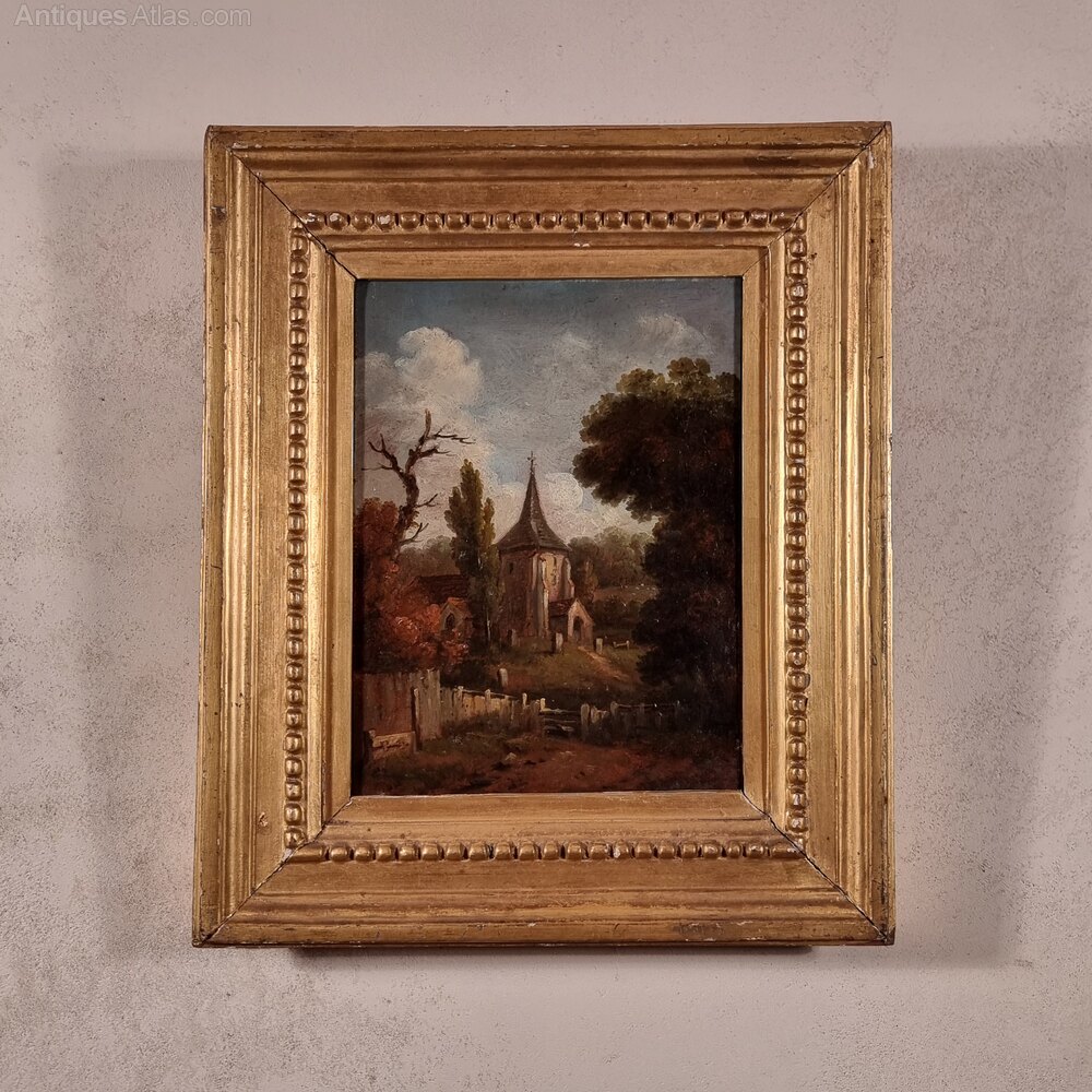 A small 19th century oil on paper applied to panel, set in a 19th century gilt frame. The picture is well painted and shows a study of a church set in the countryside, possibly suffolk. The picture is in excellent condition and is ready to hang.overall measurements