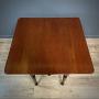 The main oblong table top has two drop flaps along its longer edges. The drop flaps are supported on two brackets to each side that swing out from the under table rail.
