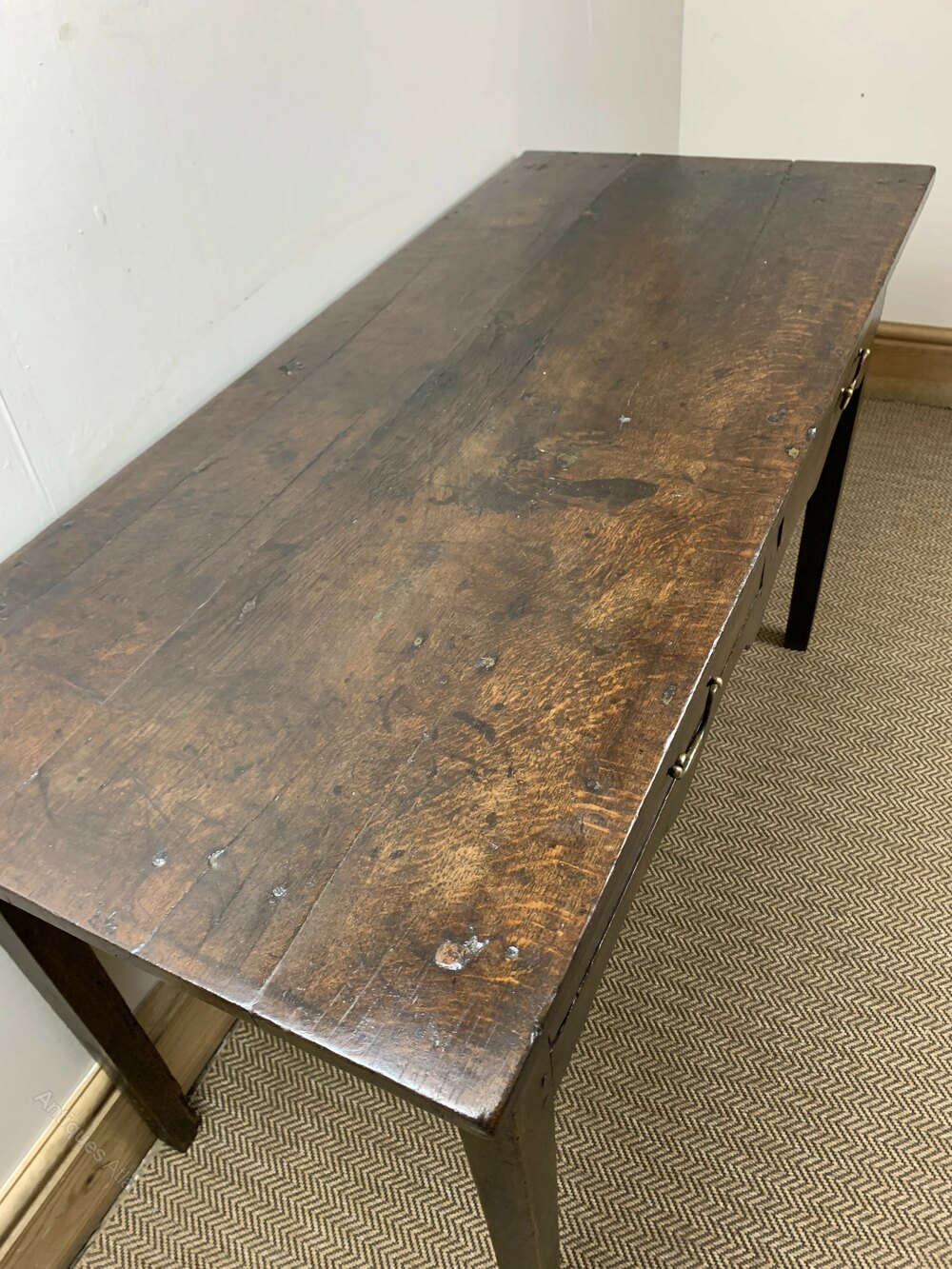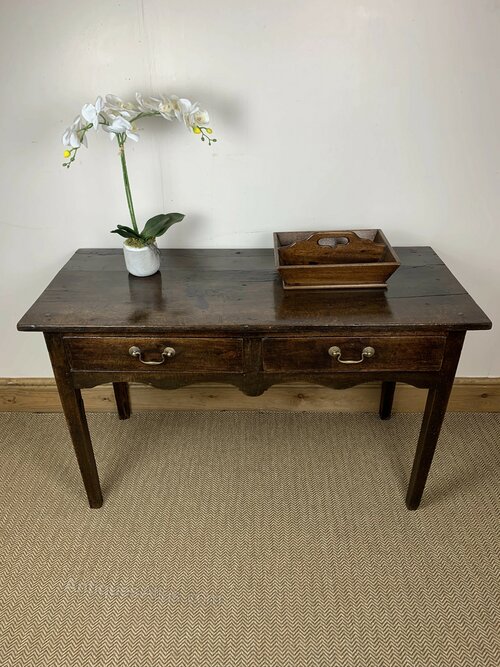 Embrace the beauty and functionality of this 18th Century Oak Serving Table, a piece that transcends time with its classic design and practical features. Perfect for those who cherish the elegance of antique furnishings, this table is sure to be a focal point in your home, blending seamlessly with both vintage and contemporary decor. This piece has been professionally restored by Taylors Directs in house antique restoration team.