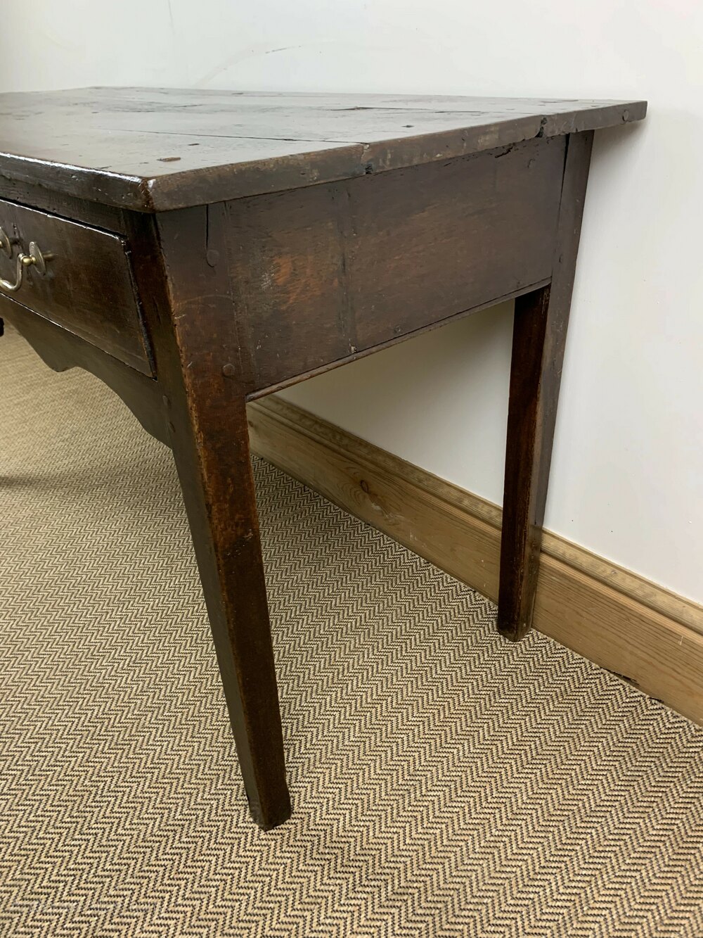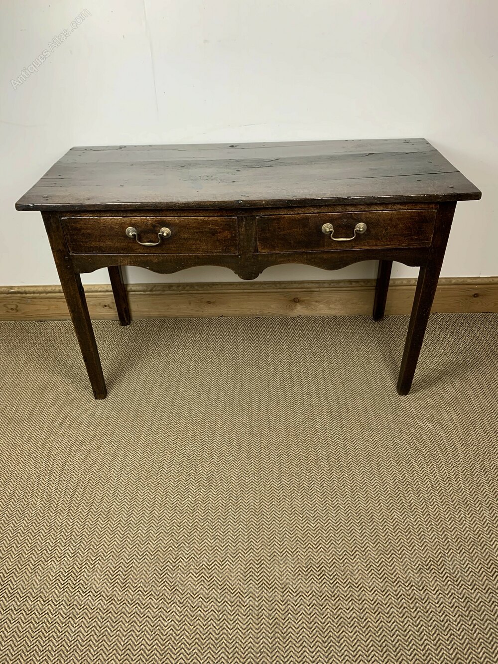 Elevate your home decor with this beautifully crafted 18C Antique Georgian Side Table. Ideal for those who appreciate the finer details of antique craftsmanship, this table not only serves as a practical piece of antique furniture but also as a stunning decorative element. Its warm oak finish and classic design make it a perfect fit for any interior, from traditional to more contemporary settings.