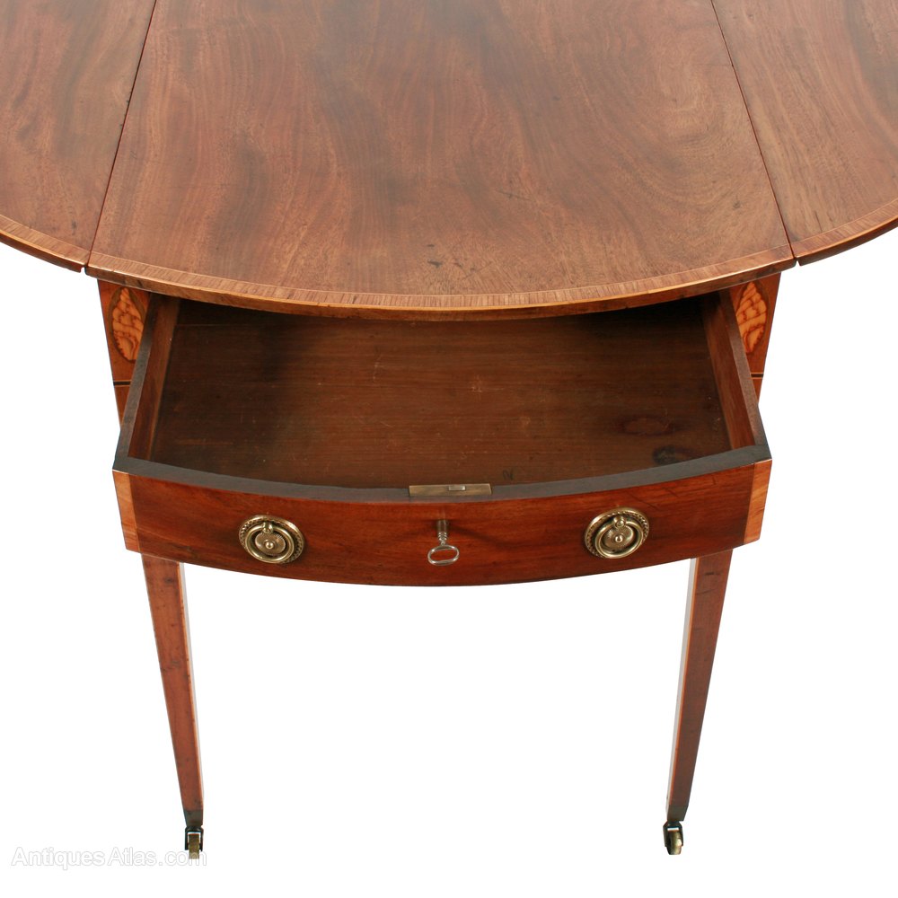 A fine 18th century Georgian Sheraton mahogany oval drop leaf Pembroke table.