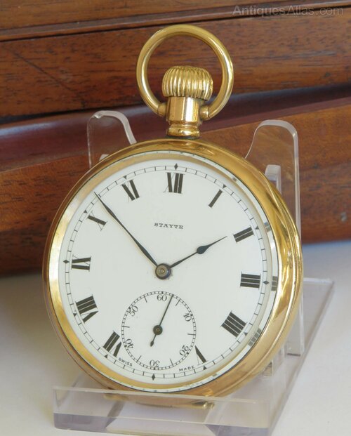 The watch has a Swiss seven jewel stem-winding movement, identified as a Tavannes, which is working well. The movement is signed Stayte, just one of the brand names registered by Tavannes. The movement is protected by an inner hinged cover which has some light surface where it has been opened in the past.