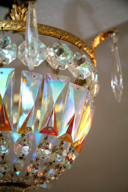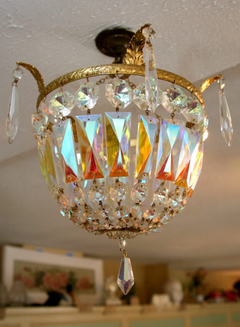 1940's Aurora Borealis Bag Chandelier with Leaves