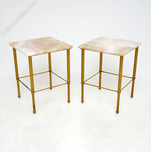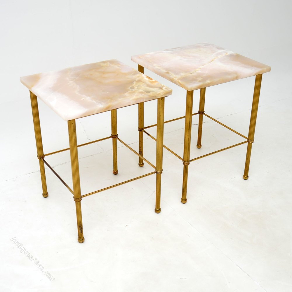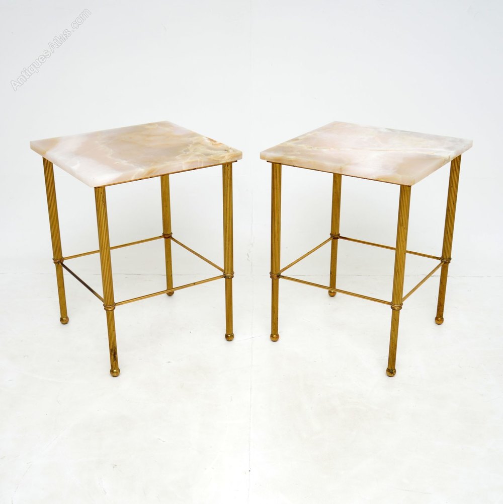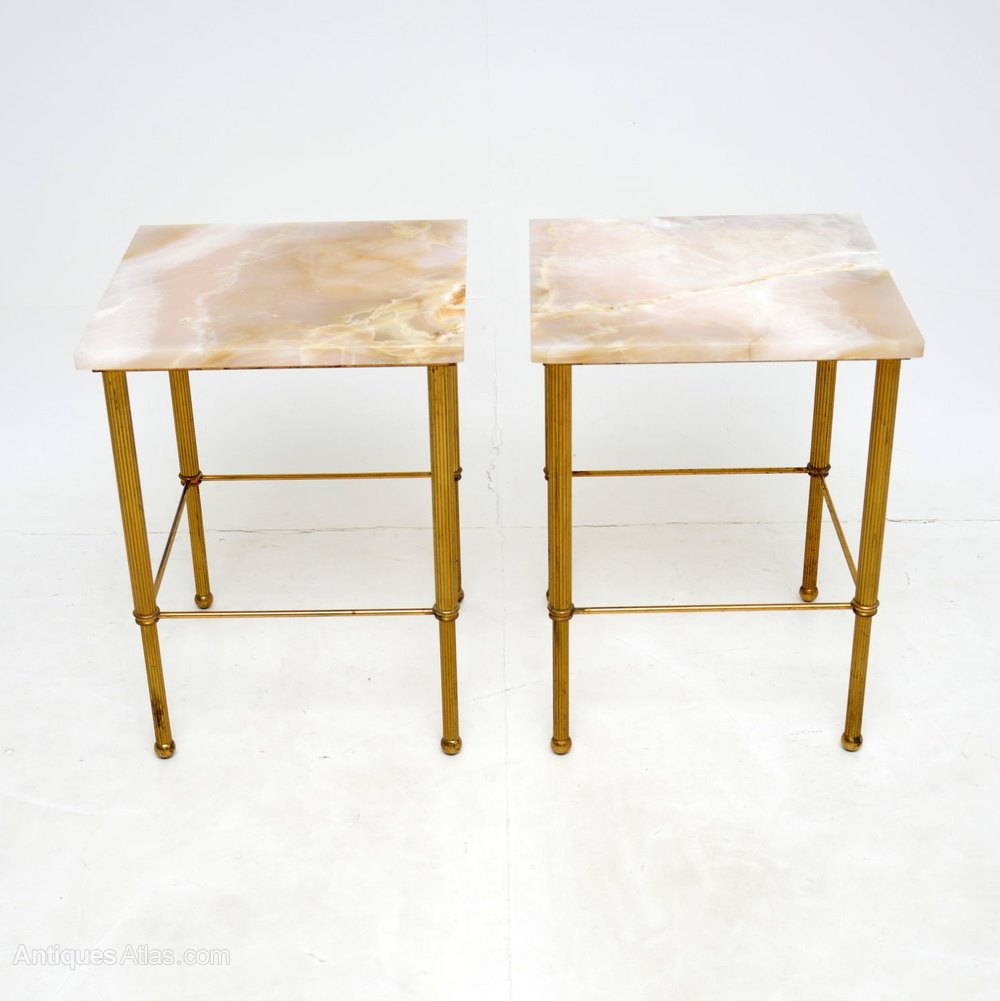 1950s Pair of Vintage Marble & Brass Side Tables