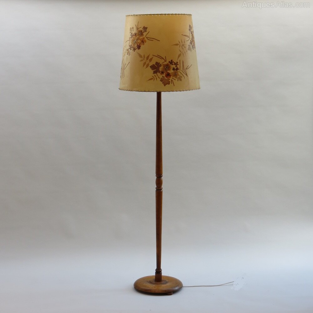 Wonderful standard lamp, turned base made from solid Beech, with dried flower vintage lampshade.