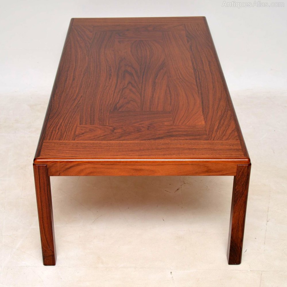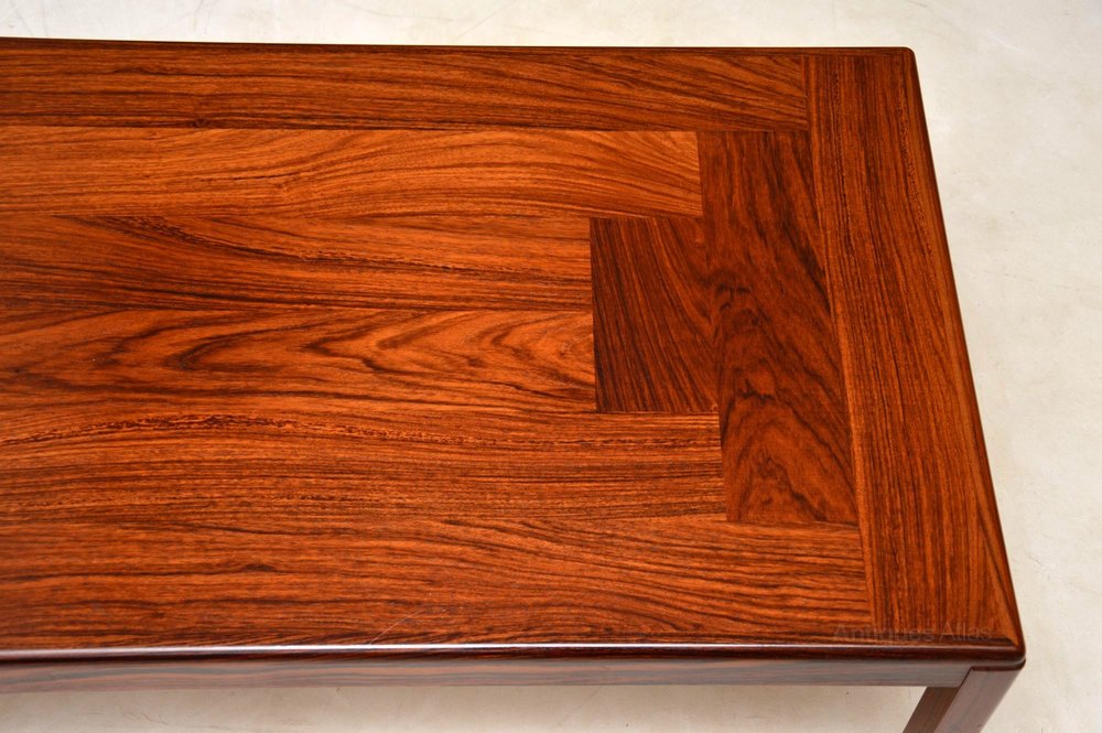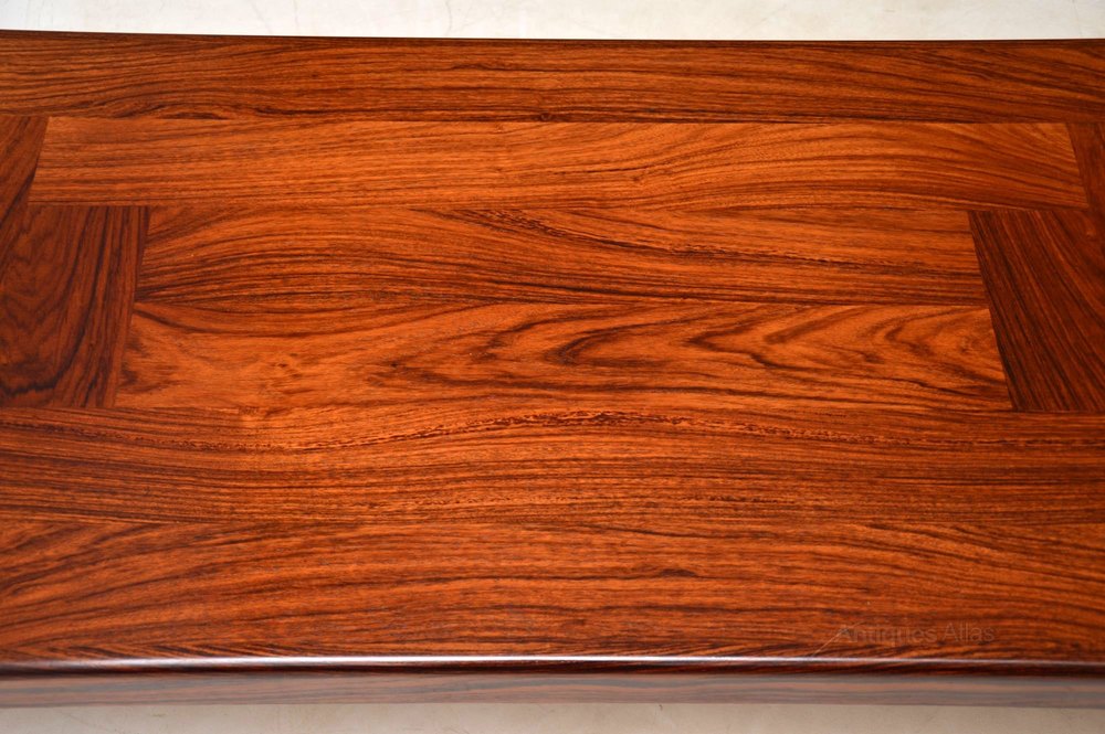 A beautiful and extremely well made Danish rosewood coffee table, this was made by Vejle-Stole, it dates from around the 1960-70’s. The condition is amazing for its age, the rosewood has a lovely colour and stunning grain patterns, there is only some extremely minor wear here and there. We also have a matching smaller coffee table available separately, seen listed under our other items for sale.