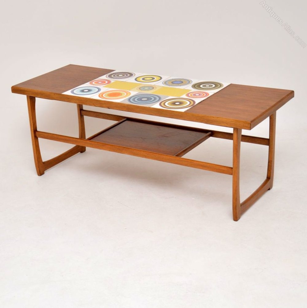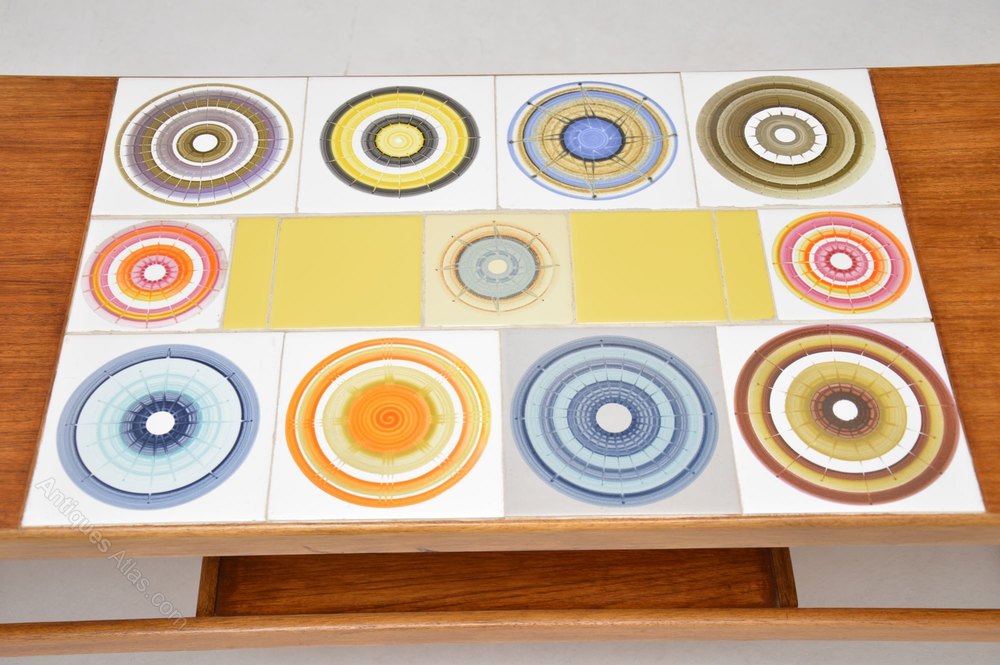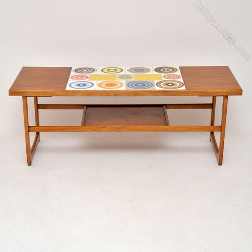A beautiful and quite unusual coffee dating from the 1960’s, this is in teak with a beautiful tiled top. Each tile has a unique and brightly coloured design. The condition is great throughout for its age, with only some extremely minor surface wear.