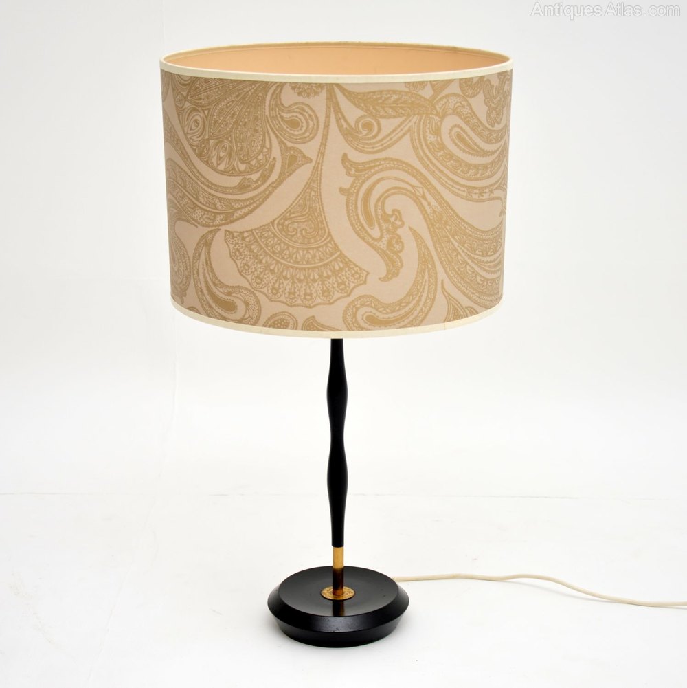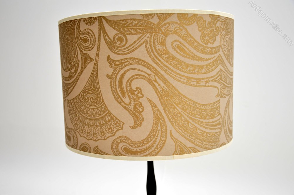 A beautifully styled vintage table lamp in ebonised wood, with brass accents. This is of great quality, it dates from the 1960’s. The condition is very good for its age, with just some minor surface wear here and there. This is in good working order, and we have paired it with this lovely modern paisley patterned shade.