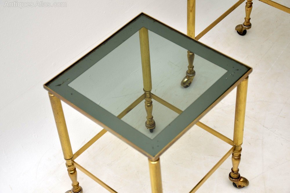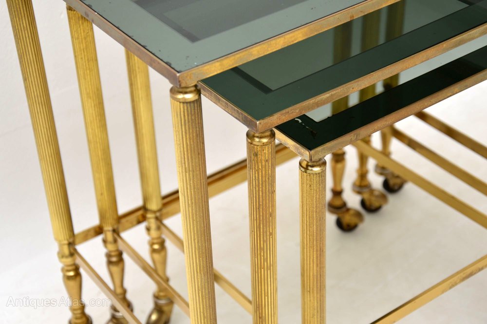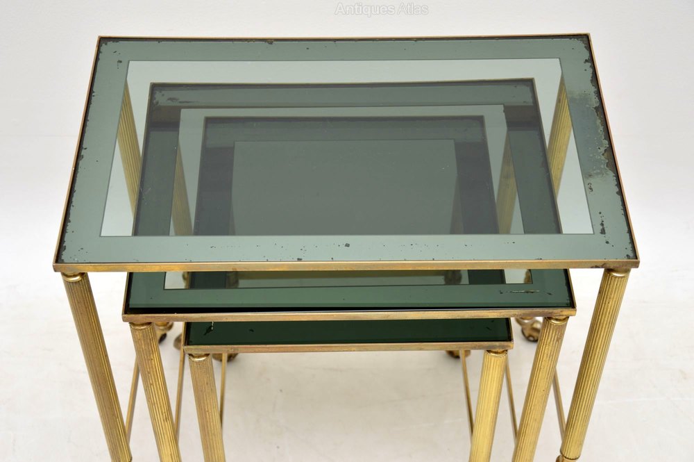 A stunning and very well made vintage brass nest of antique tables, these were made in France and date from the 1960’s. They’re much better quality than the ones we usually find, they are in great vintage condition as well. All is clean, sturdy and sound, there is just some minor surface wear to the glass.