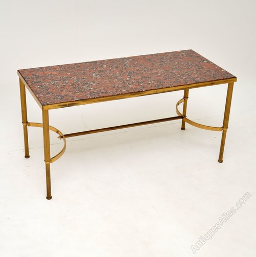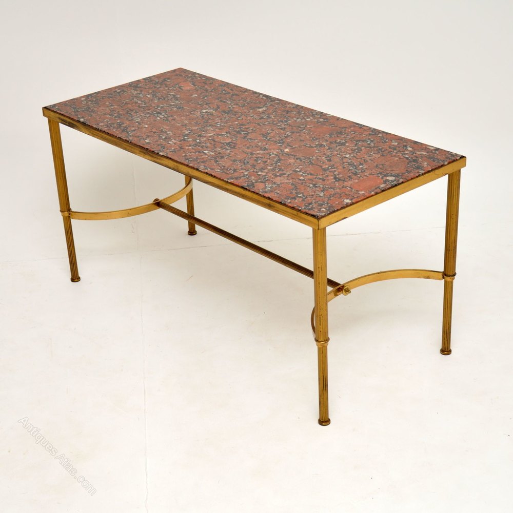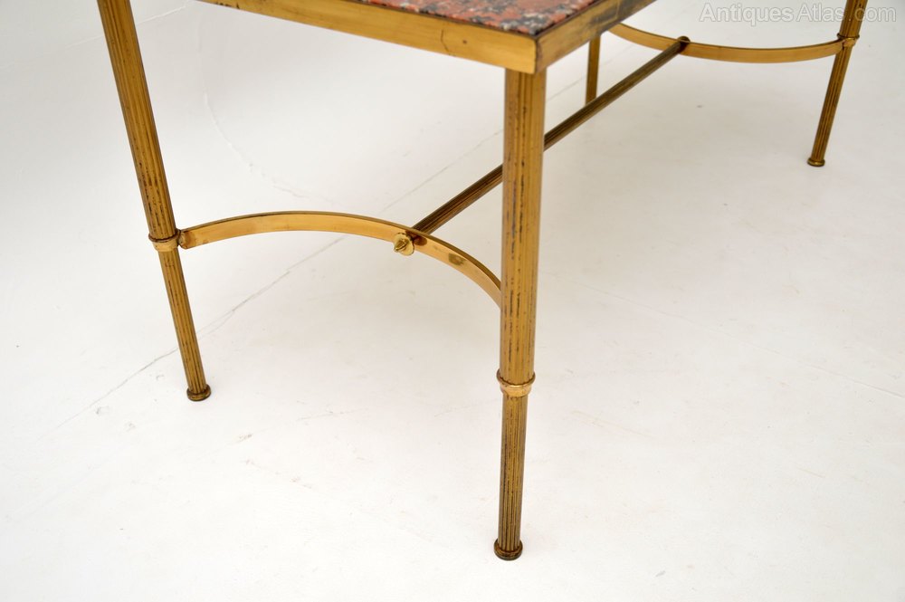 It is of superb quality, the solid brass frame is beautifully shaped with a wishbone shaped stretcher and fluted legs. The brass is clean, sturdy and sound, with only some light surface wear and tarnishing to be seen. The marble has a beautiful colour and is in great condition.