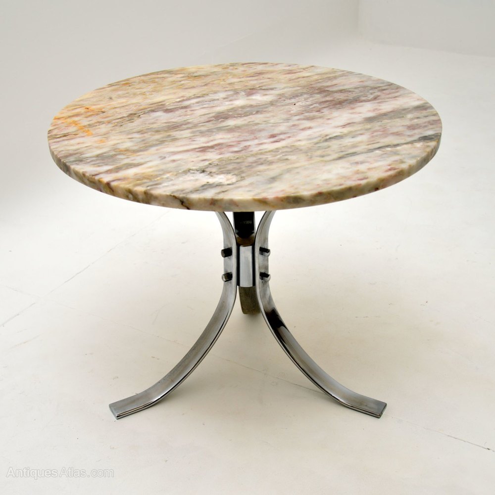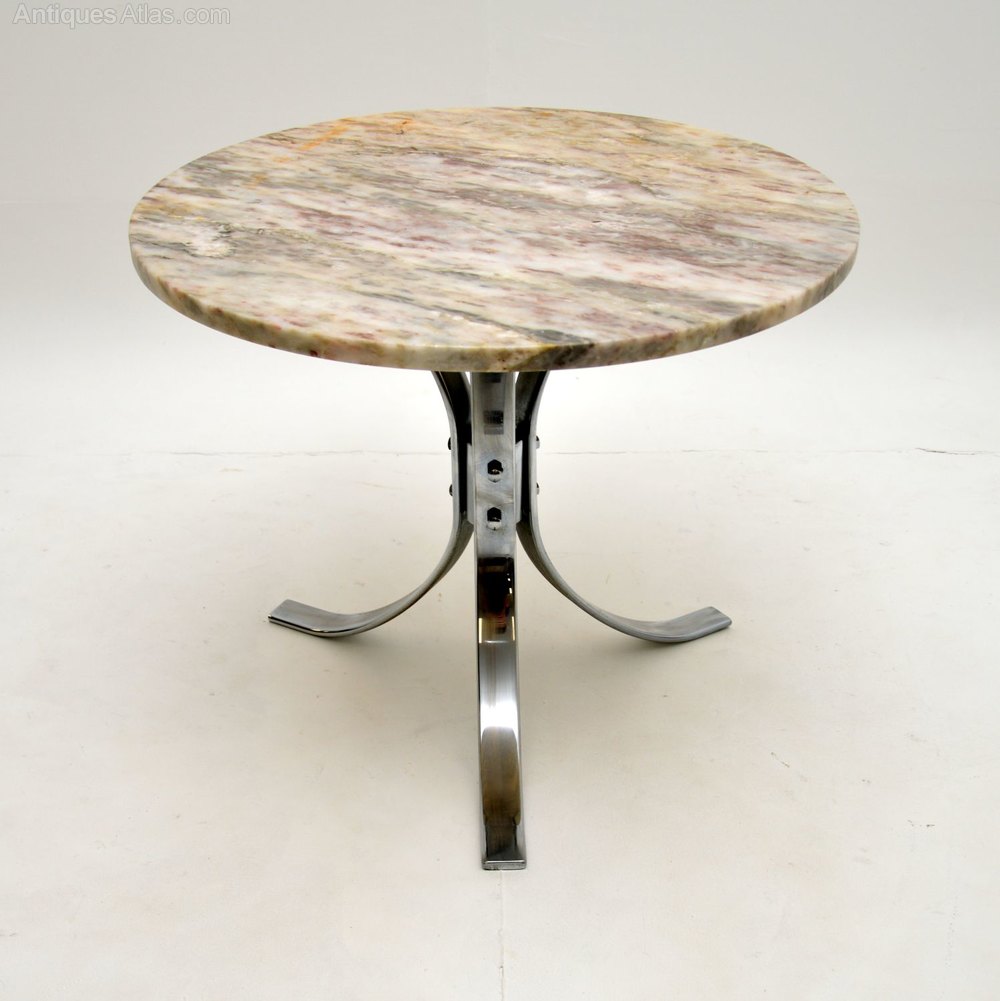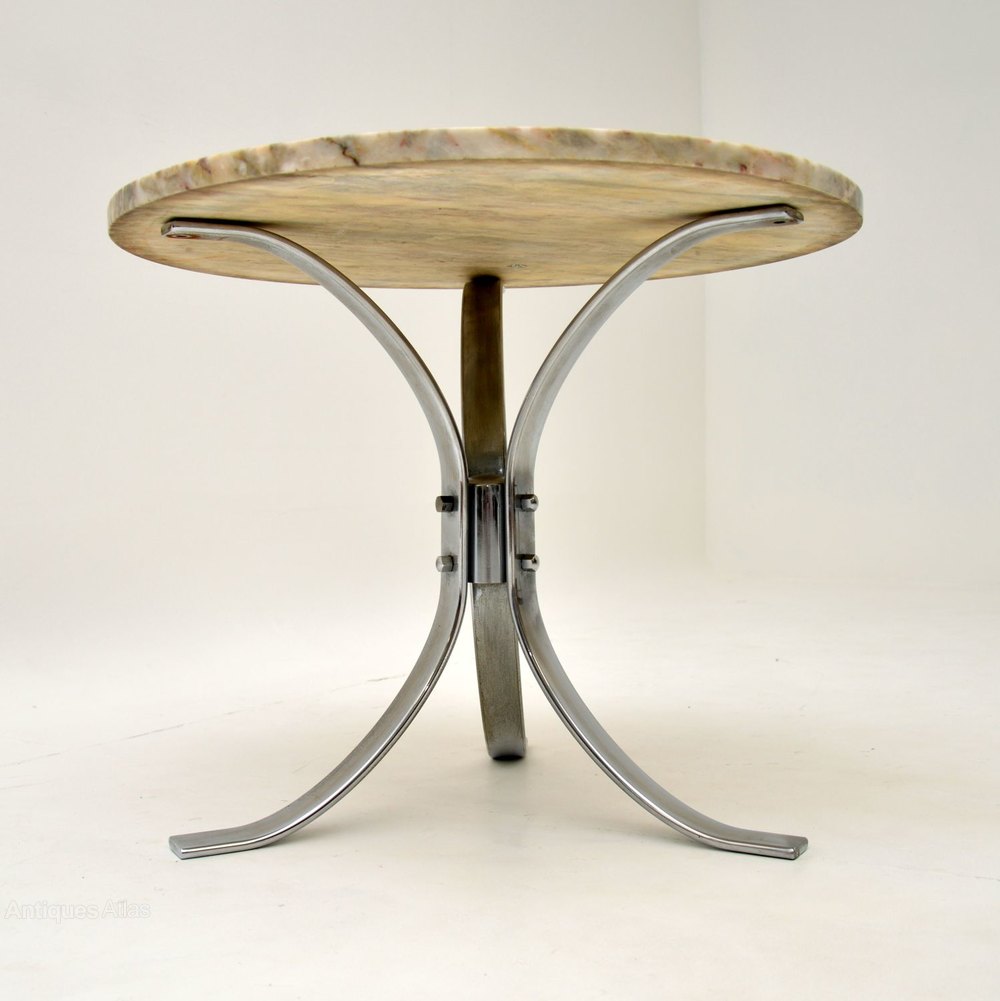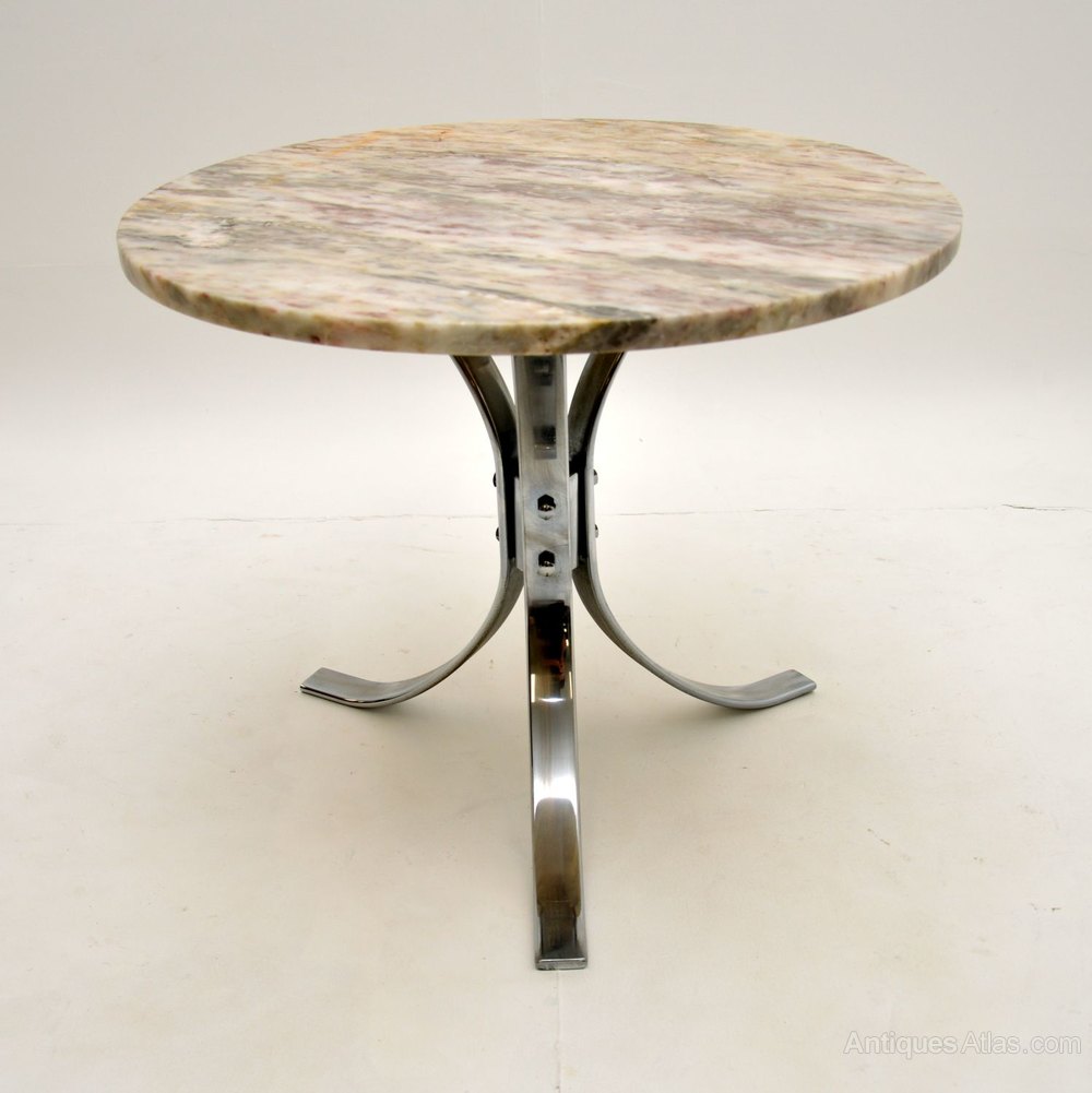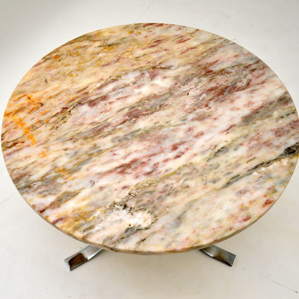 A stunning vintage low circular vintage marble top table, perfect for use as a coffee table or side table. This was made in England, it dates from the 1960’s.