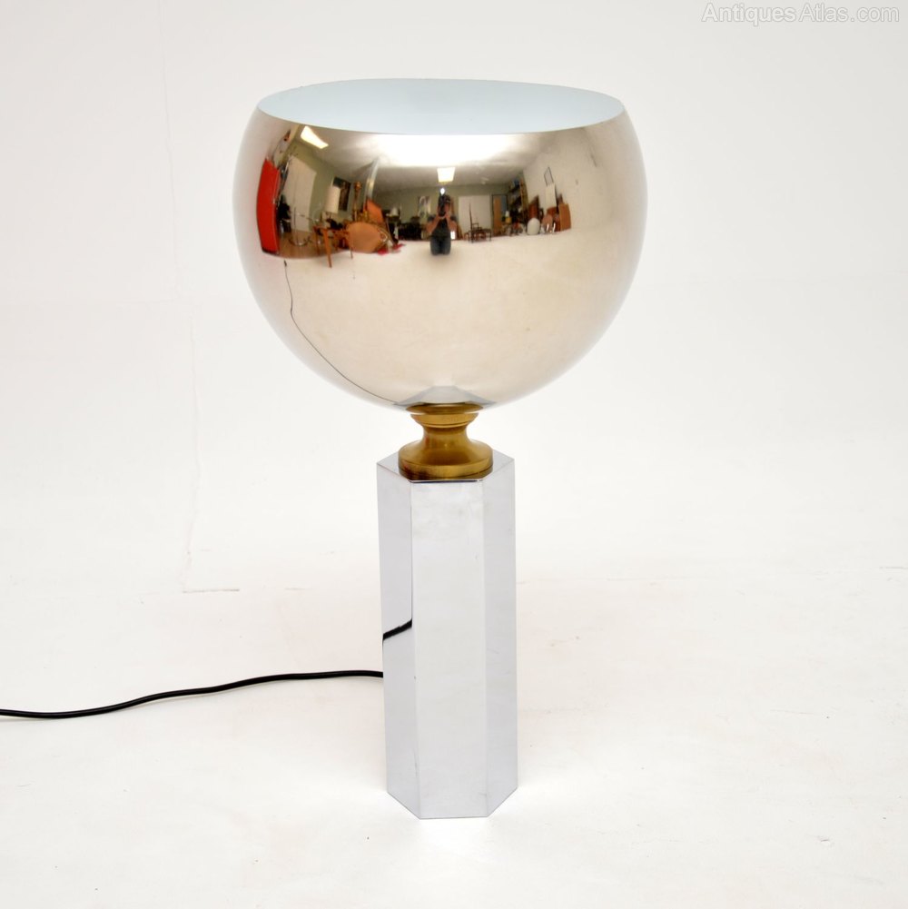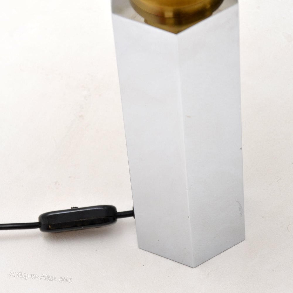 A stunning vintage chrome and brass table lamp, this was made in Europe, likely Italy or France, it dates from the 1970’s.