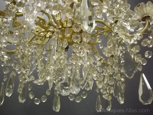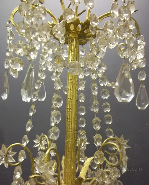 French Gilded 6 Light Antique Crystal Chandelier