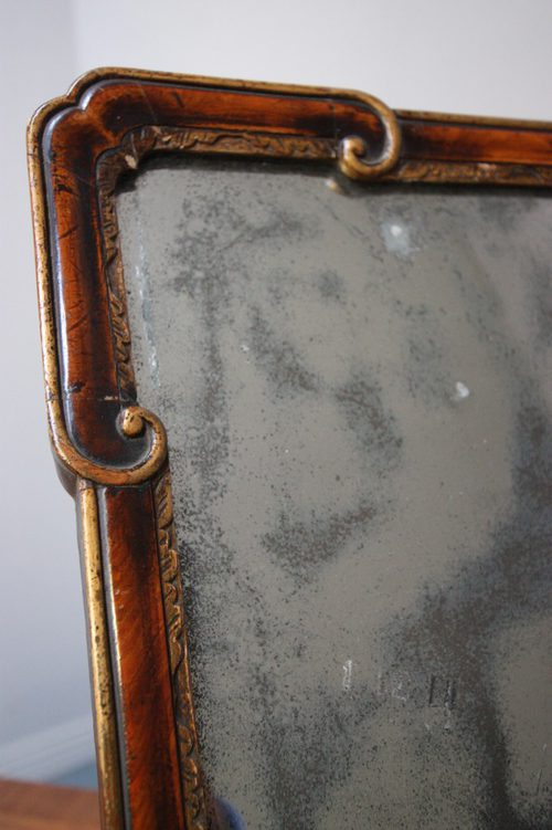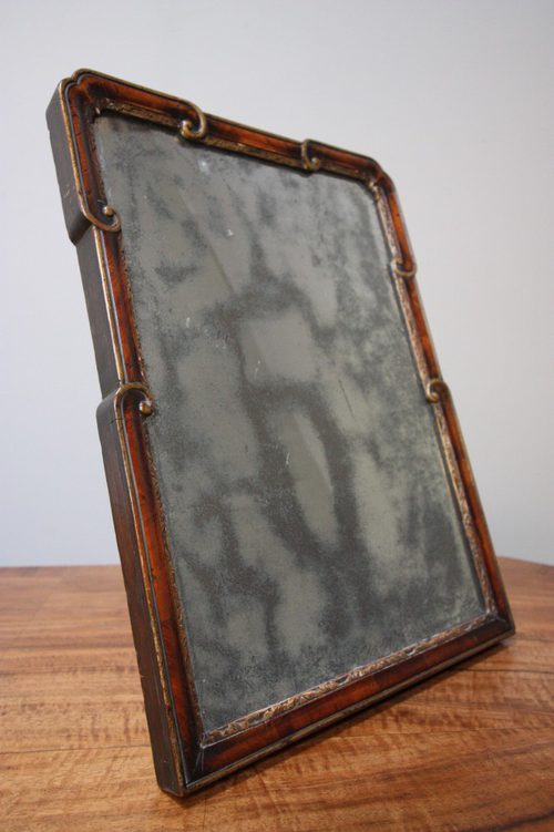 This antique mirror has an easel stand, making it good to use as a free standing mirror, maybe in a bathroom or bedroom, but the mirror can also be hung on a wall.