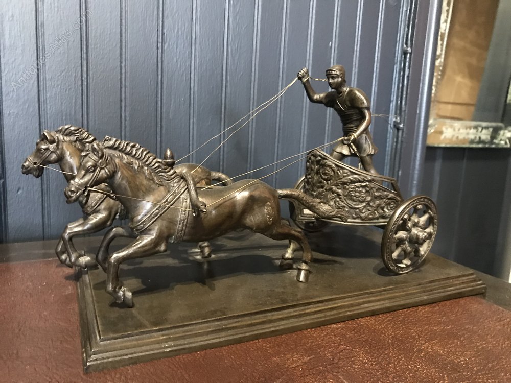 An impressive, 19th Century Grand Tour Bronze of an ancient Roman gladiator on horse drawn carriage.