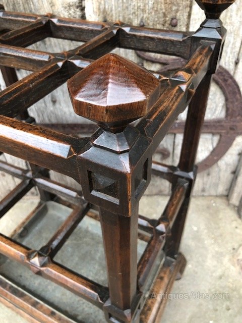 A 19th country house oak stick stand, great colour and texture.