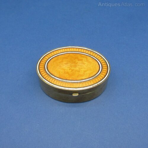 The Patch Box has a very decorative Engine turned Enamelled top with White boarder.