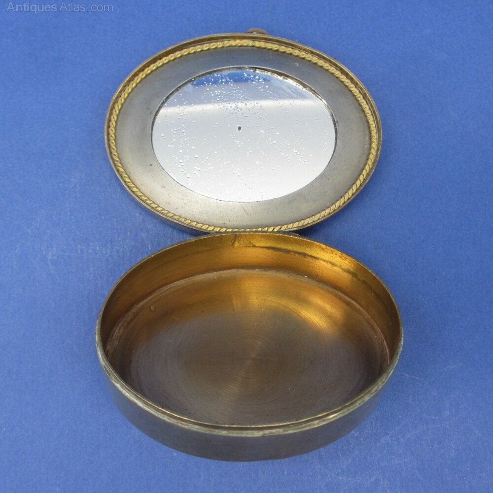 This is a Late 19th century Orange Enamelled on Copper Patch Box with oval mirror.