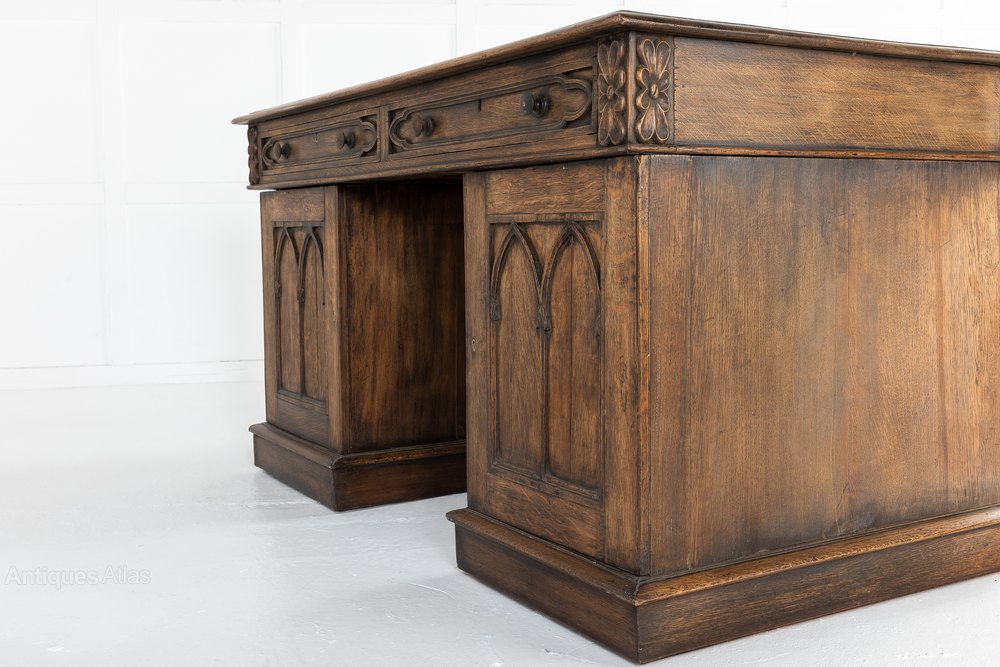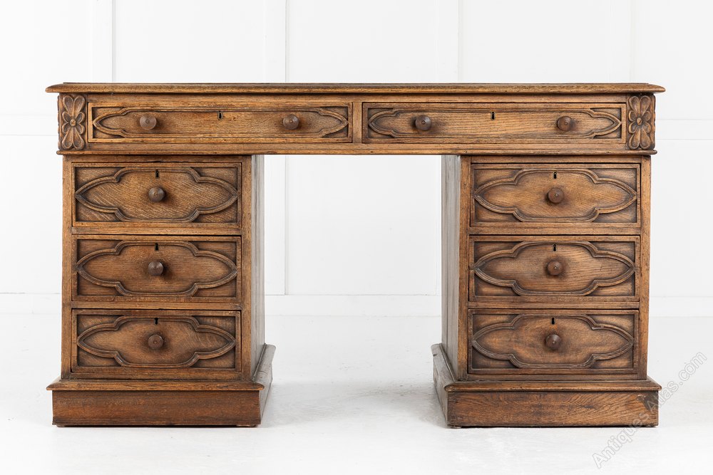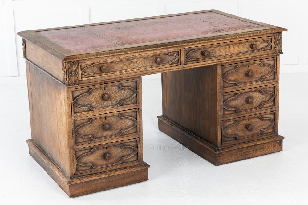 Carved Oak Pedestal Desk c.1890