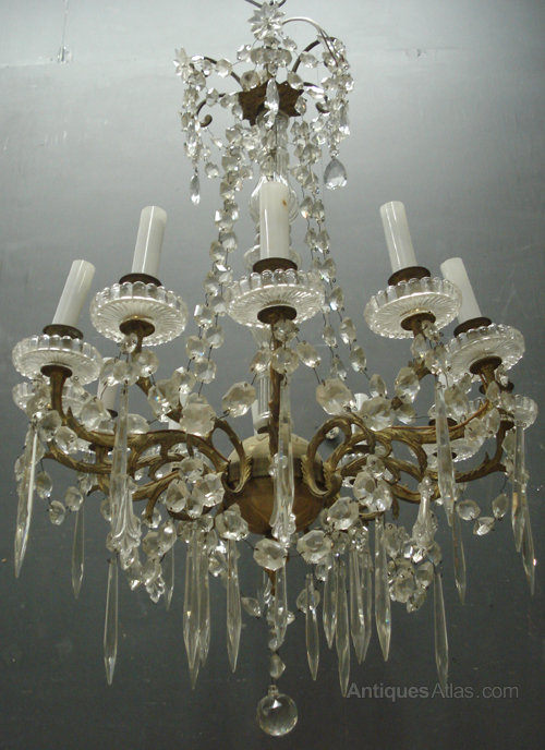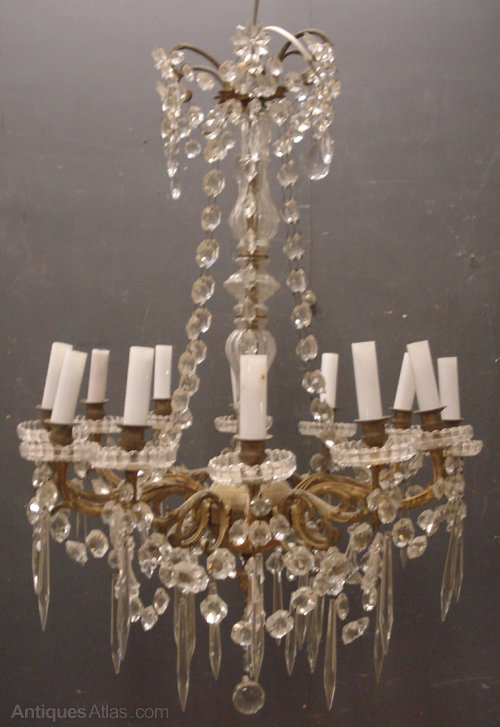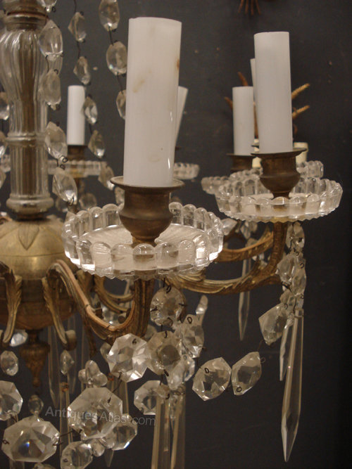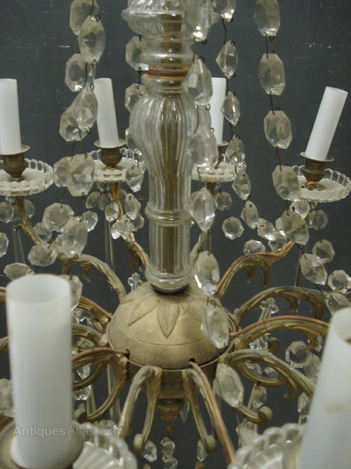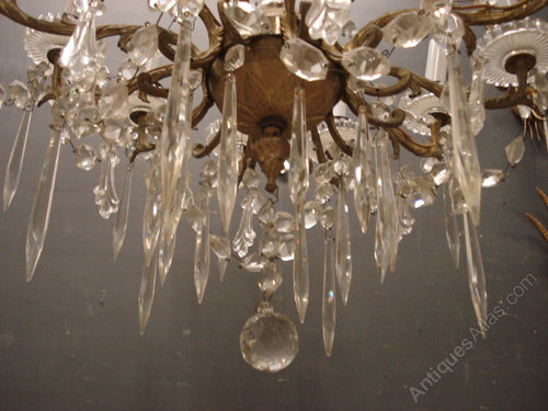 Ref 4114 - 19th Century Napoleon III 12 arm mellow brass and ormolu chandelier. Clear crystals. Candles or electric. Old wiring needs checking. Circa 1860.