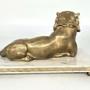 This highly decorative mid 19th century desk inkstand is in the form of a recumbent lioness. She is very finely detailed and is cast in solid bronze with a hand chased and gilt finish. Her head lifts and hinges back to reveal a hidden brass inkwell.