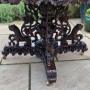The table stands on solid brass castors which support the lower platform base which is of a cross form with an intricate fruit and vine carved frieze. Rising from the platform are four large beautifully carved tigers which connect to four carved and fretted panels with a matching fruit and vine design.