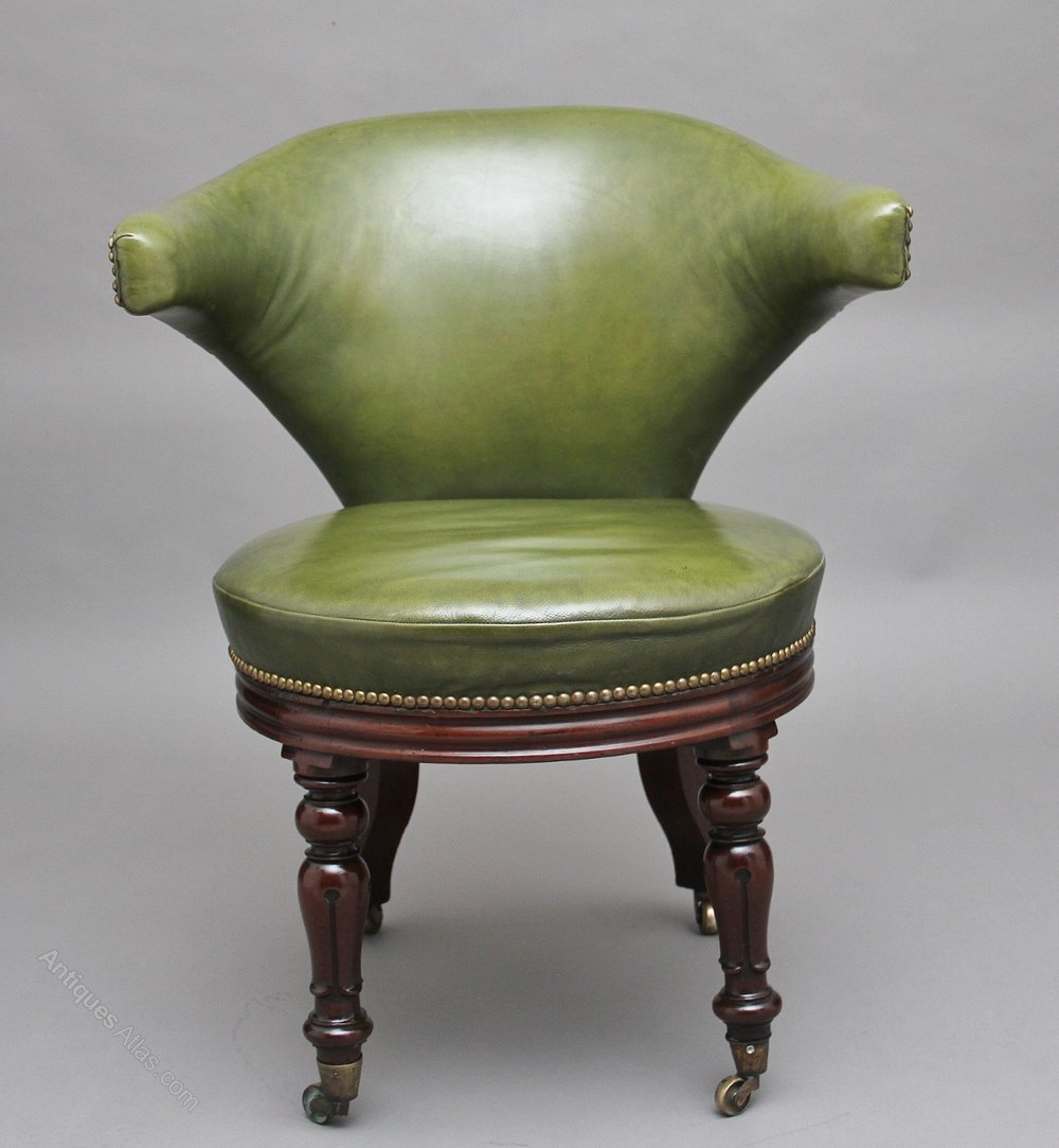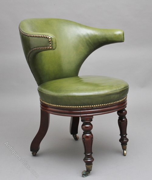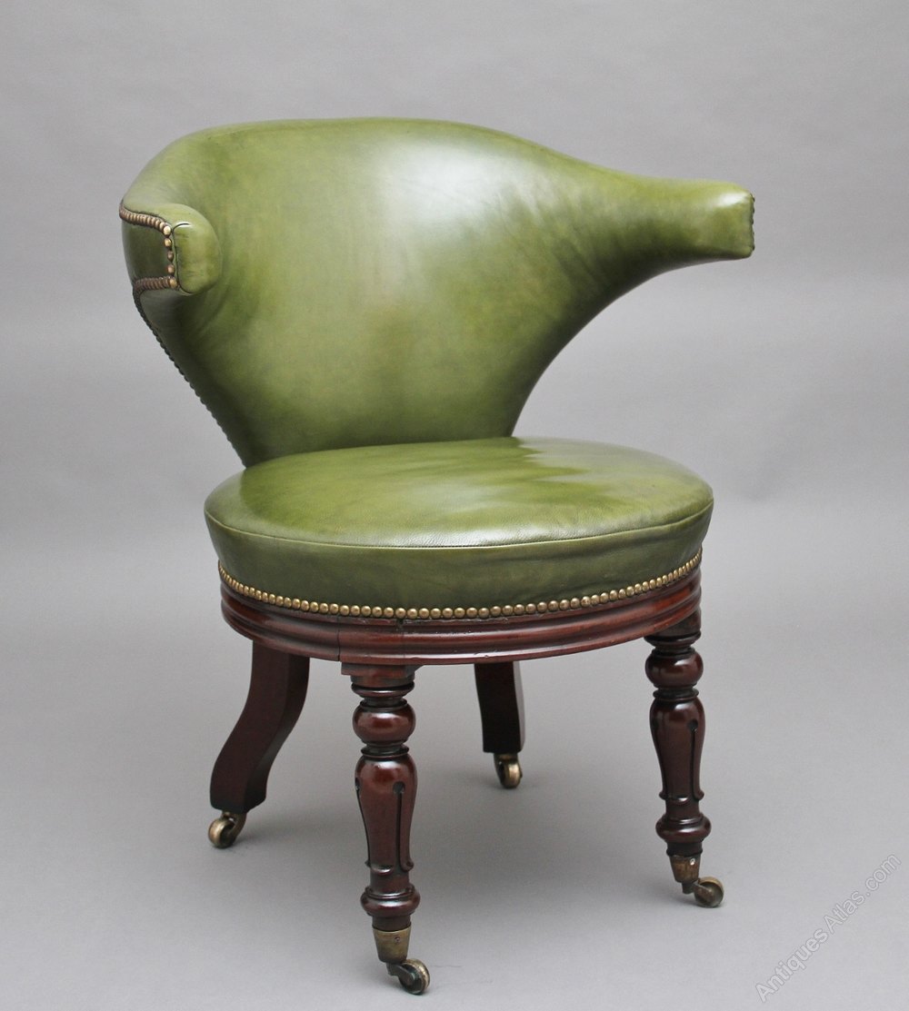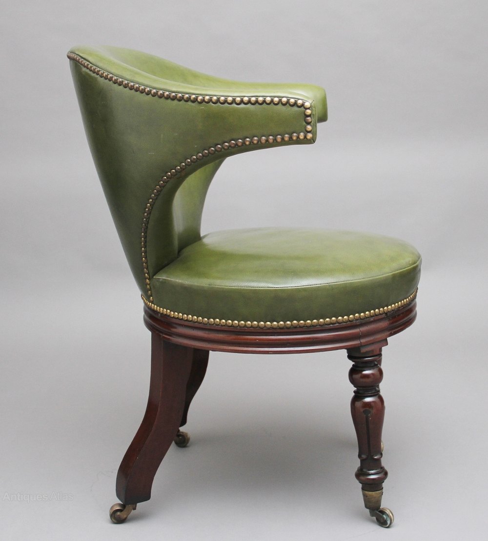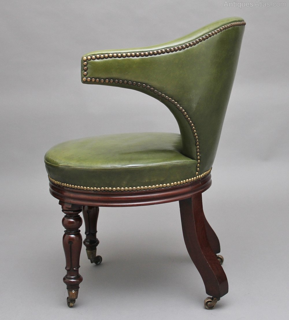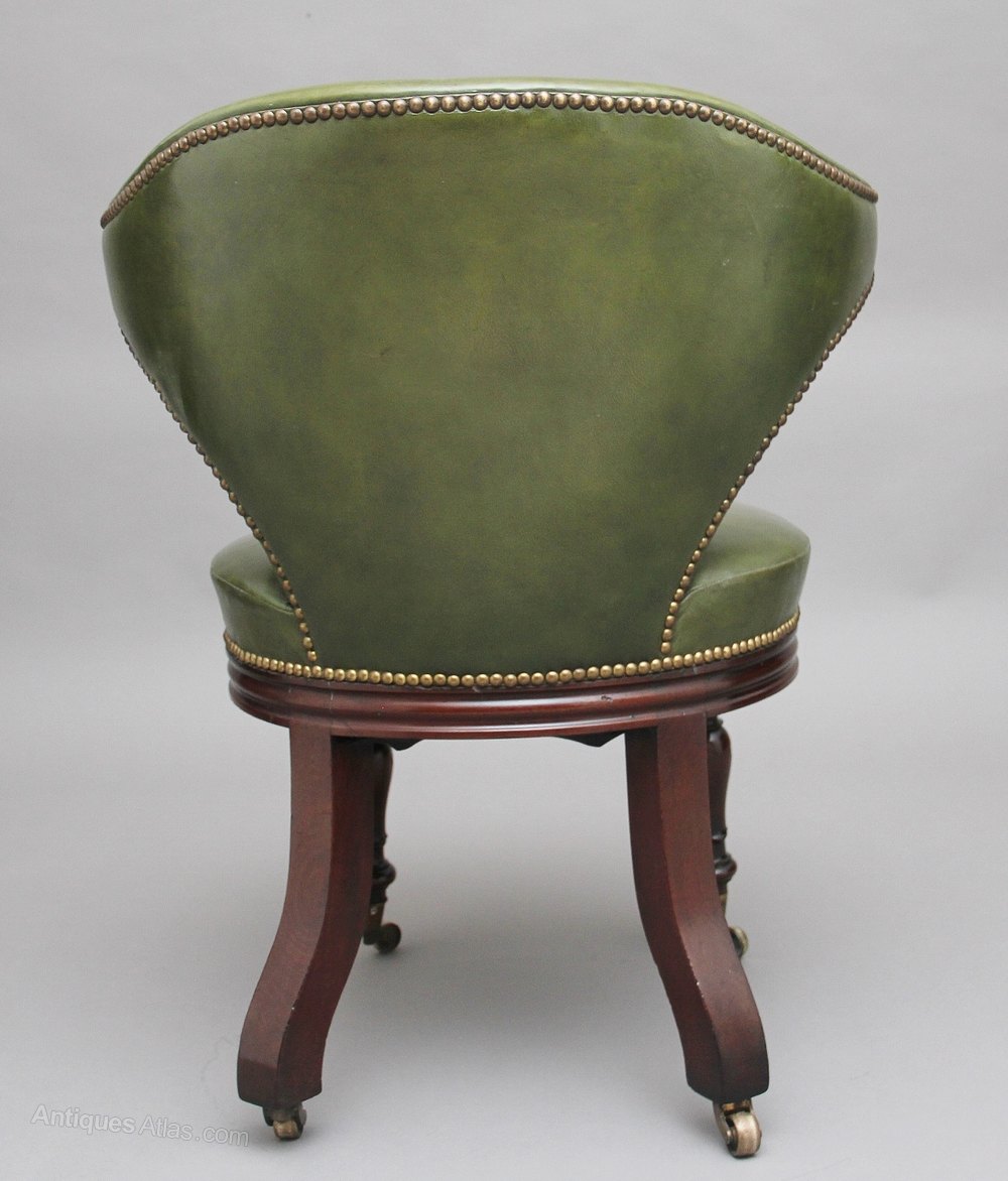 19th Century mahogany & green leather desk chair