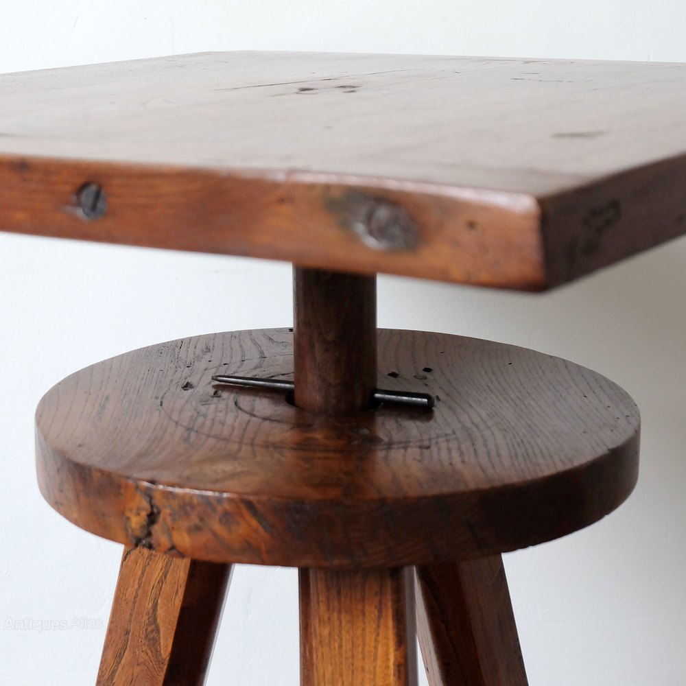 A very good quality French antique adjustable scuplture stand in original condition, late 19th century, solid oak construction.