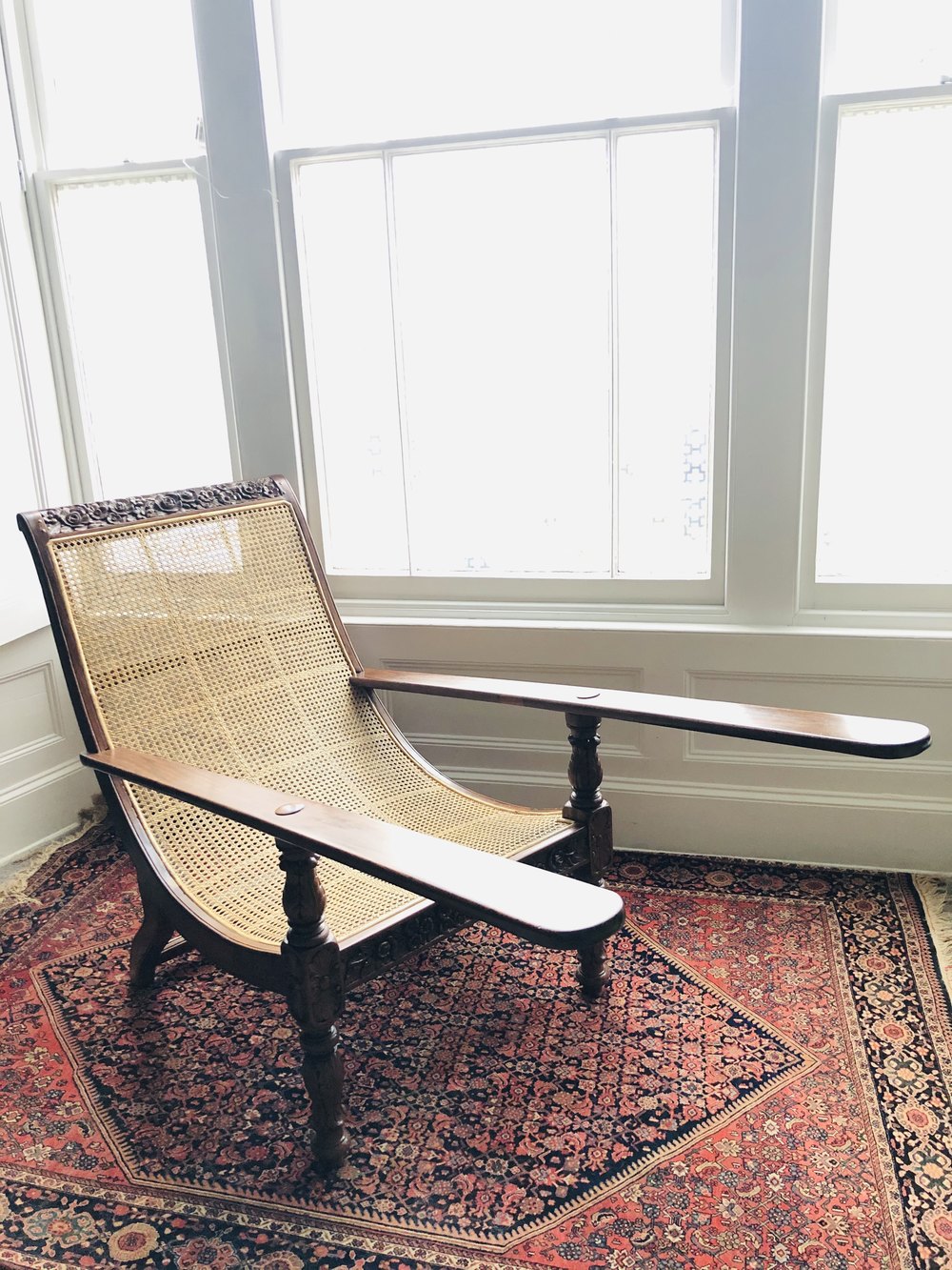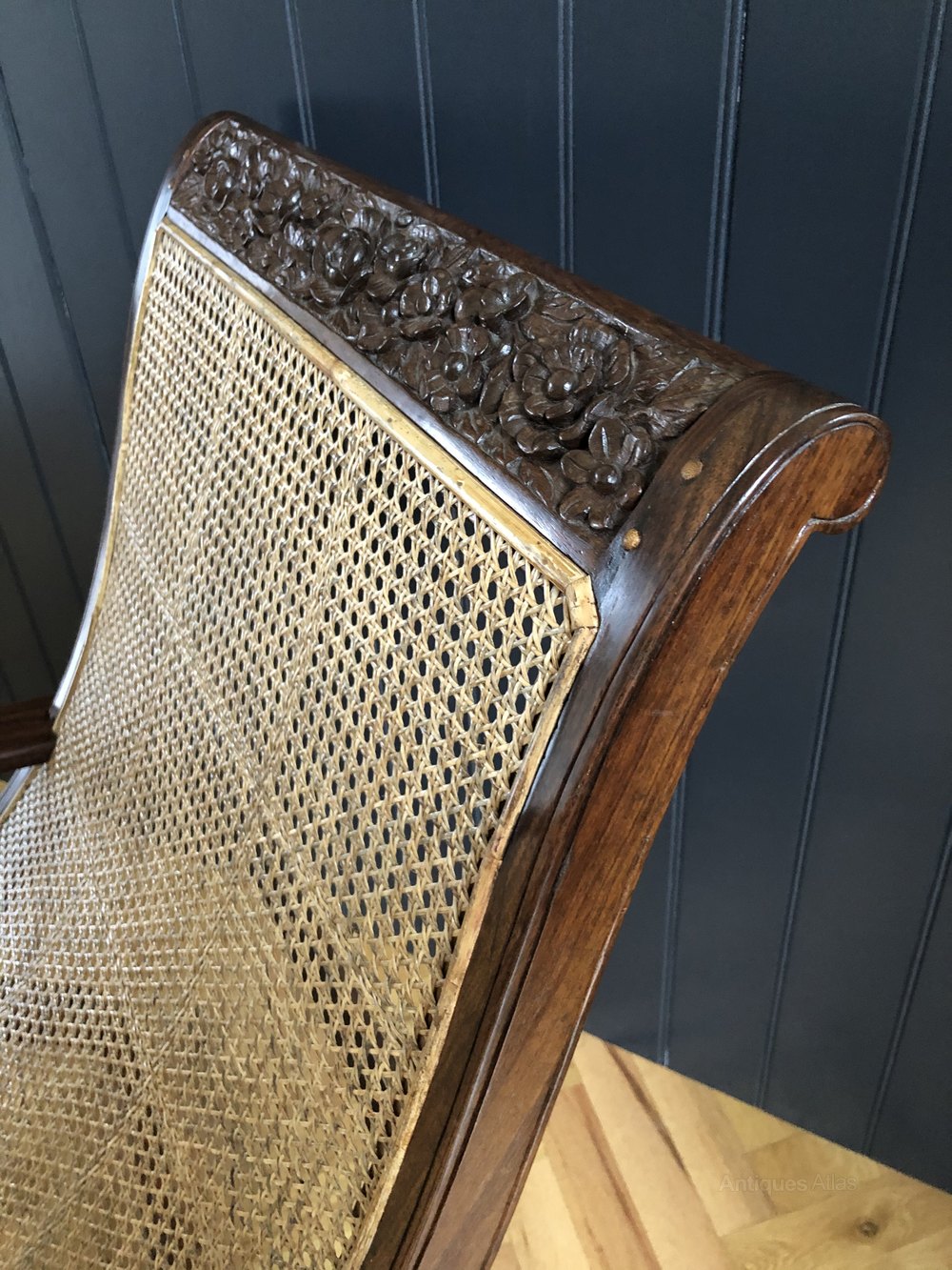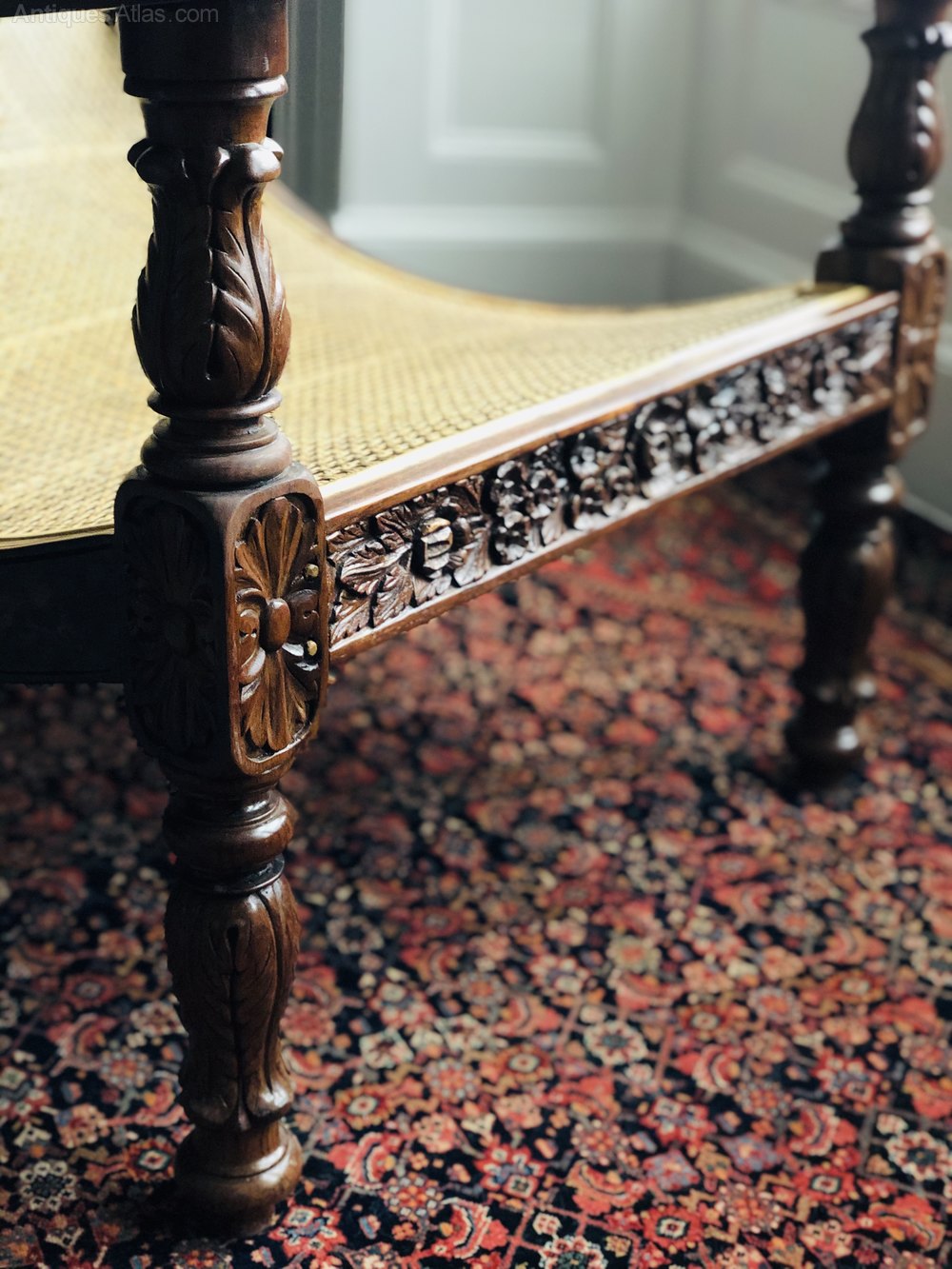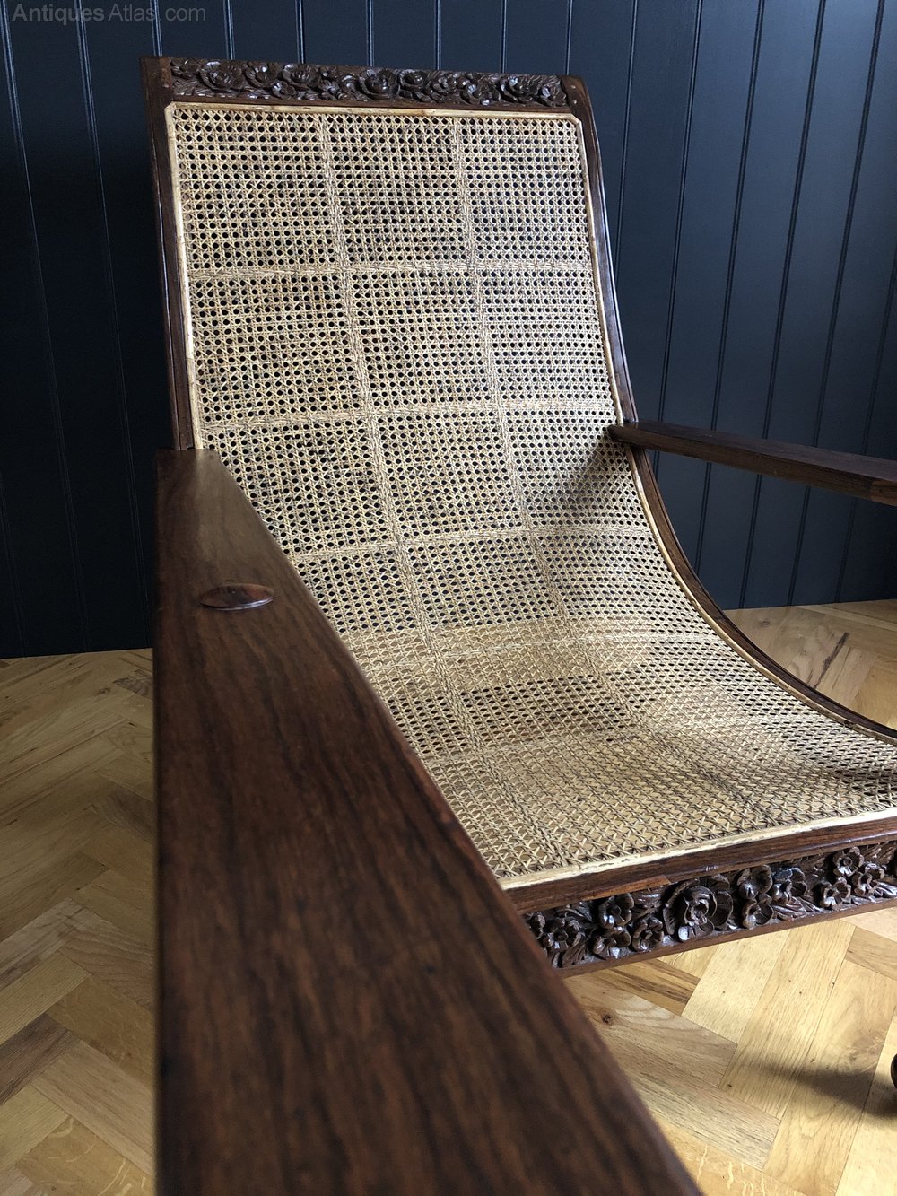 The best Anglo-Indian antique furniture was commissioned by British officials during the Raj and was often beautifully carved or inlaid solid teak or Indian rosewood. This fabulous Plantation chair dating from c. 1880 is a fine example of such Indian craftsmanship with the beautifully detailed carvings - featuring floral and foliage on the friezes and turned acanthus carved legs.