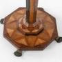 A beautiful 19th Century specimen wood occasional table. The top inset with numerous exotic veneers in geometrical diamond patterns, and cross banding, of wood veneer. Supported by an octagonal column and an octagonal base with similar veneers as the top. Terminating with brass paw feet.