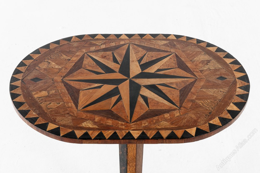 A very well designed table with various woods inlay having a lovely colour and patina. A tremendous amount of work has gone into making this table.
