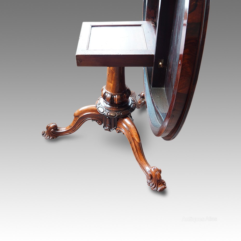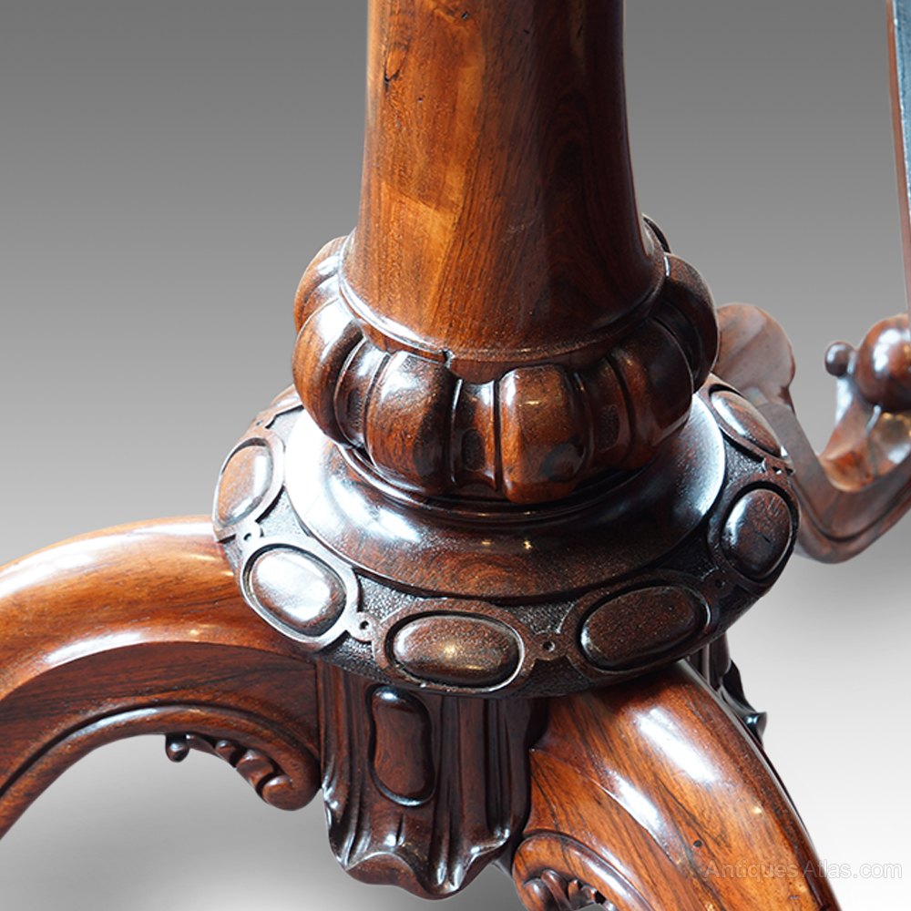 The solid rosewood column with superb carving and the 3 legs coming from the column to form the elegant legs