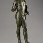 This figure was long thought to be that of Narcissus, however the grapes in his hair and the animal skin draped over his shoulder does suggest it is in fact a figure of Bacchus, Roman god of wine, after a model by Vincenzo Gemito (1852-1929).