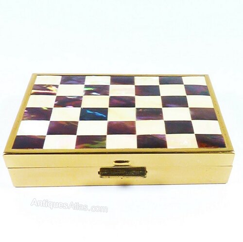 The lid of this musical powder box is adorned with high quality iridescent mother of pearl & abalone.