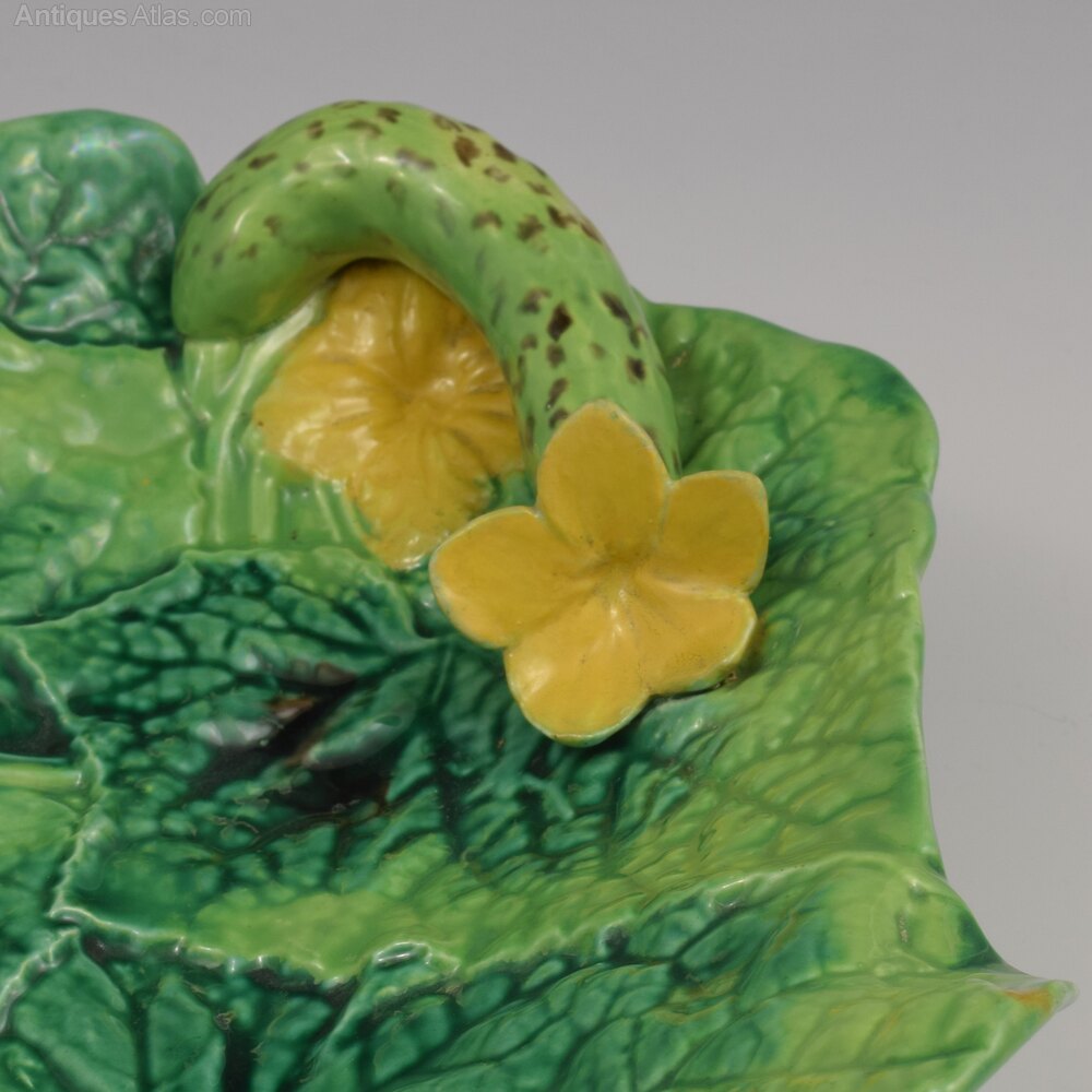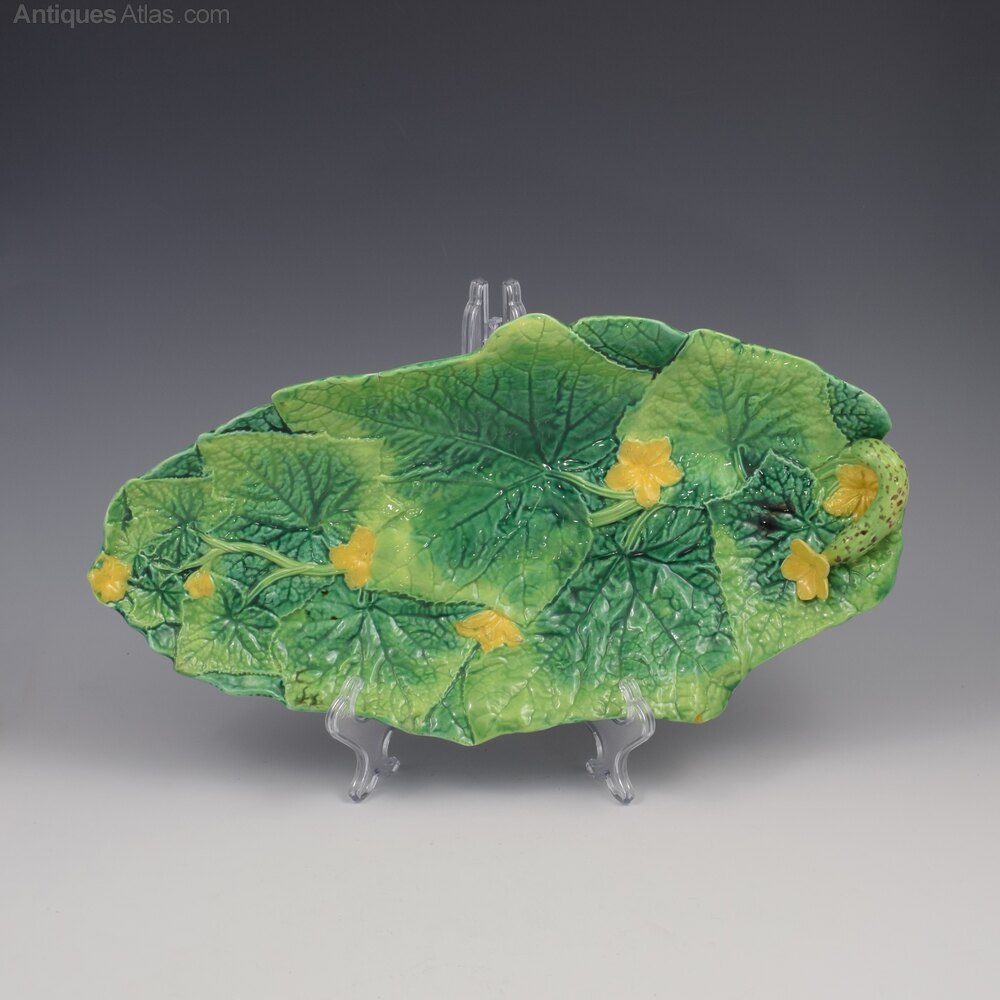 42cm Large George Jones Majolica Cucumber Tray