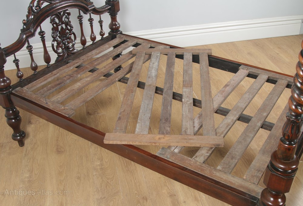 If you require the slats lowering into the bed frame, we charge £90 for the structural work. By lowering the slats the width of the mattress will be reduced by 1” in total. The slats are lowered by around 3” in height. The benefit of lowering the slats is that you get to see more of the headboard carvings even though you are using a modern 10” – 12” depth mattress. The original Victorian mattresses would have only been 2” – 3” deep.