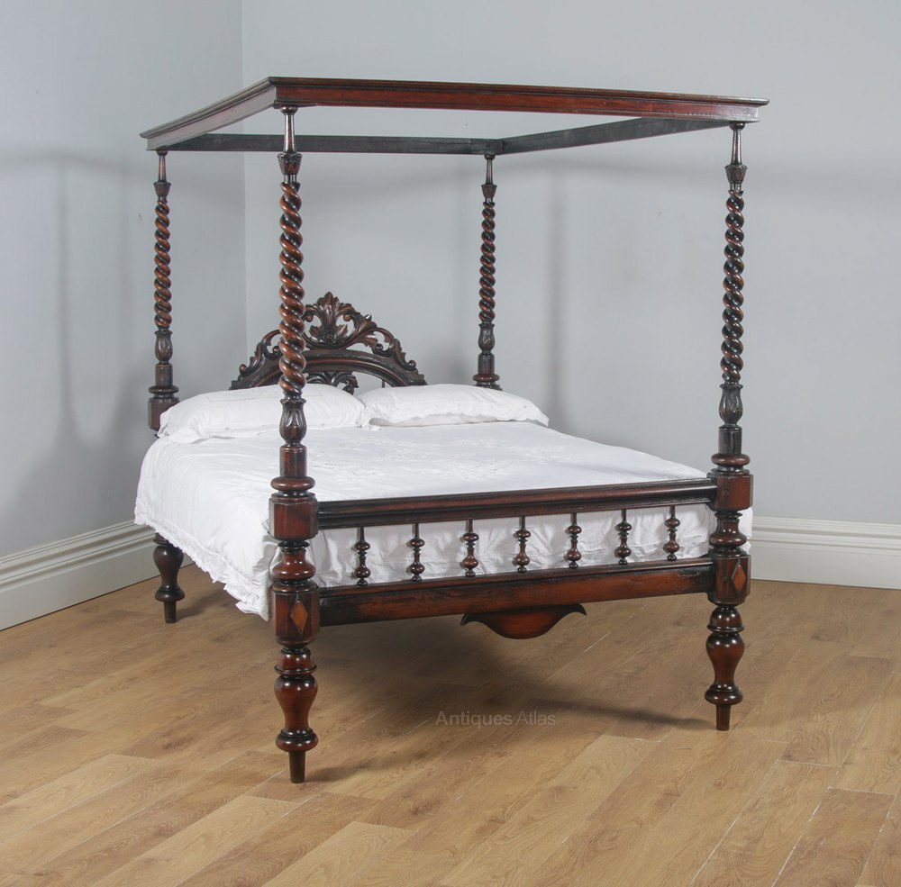 Here is a fine quality antique 4ft 6” wide Victorian colonial Raj four-poster bed, circa 1870, which will fit a standard UK double size mattress (4ft 6” wide x 6ft 3” long), in good condition.