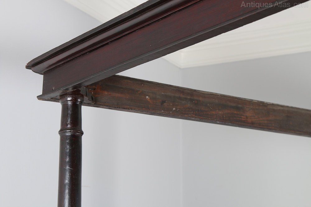 We do offer a separate draping service whereby we can dress the bed with any fabric of choice. This service can consist of the basic fabric being wrapped around the canopy, to hanging curtains or, providing a dressed solid roof with hung curtains. Apart from the superior style and presence, this four-poster bed had a practical purpose. The bed would have originally been decorated with a light muslin cotton material to prevent the mosquitos from biting the occupants in bed. The advertised price does not include drapes. Please contact us for a quote.