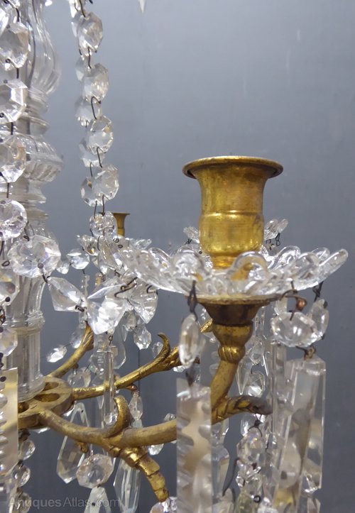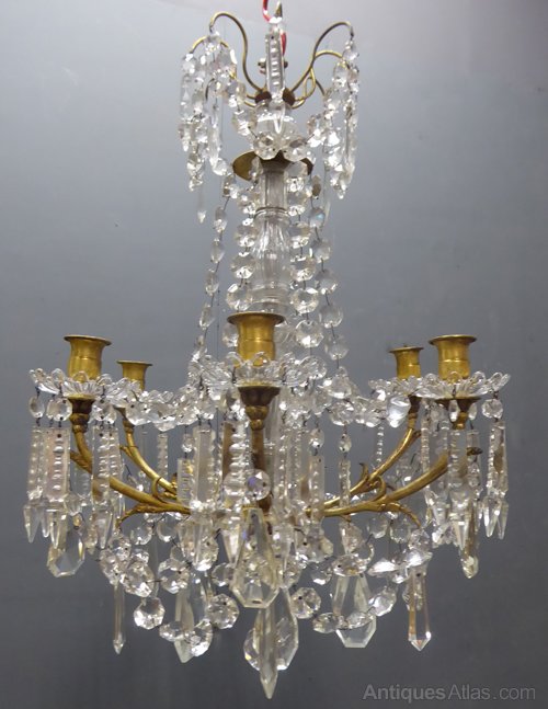 Ref 7348 - 19th Century 6 arm brass Napoleon III antique French chandelier with original clear crystals. For candles or can be wired. Circa 1860.