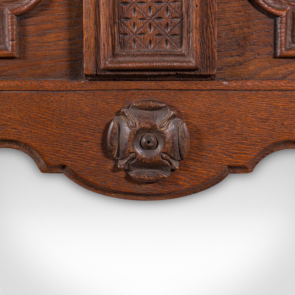 This is an antique reception hall coat rack. An English, oak six hook wall-mounted cloakroom valet, dating to the Edwardian period, circa 1910. A superb and generously proportioned example, this handsome wall rack displays the quality craftsmanship and refined detail characteristic of Edwardian interior fittings. Rich in colour, decorative in form, and entirely practical in purpose, it stands as an ideal feature for a period hallway or reception setting.