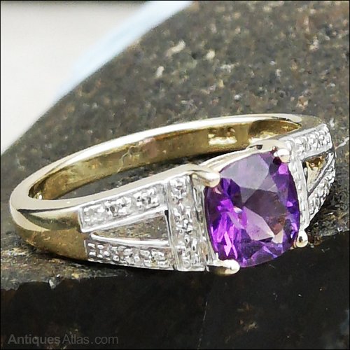 9ct Gold Amethyst & Diamond Art Deco Ring