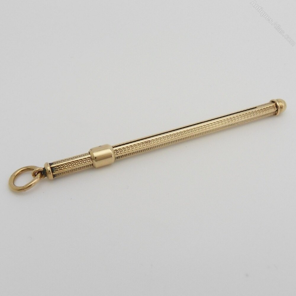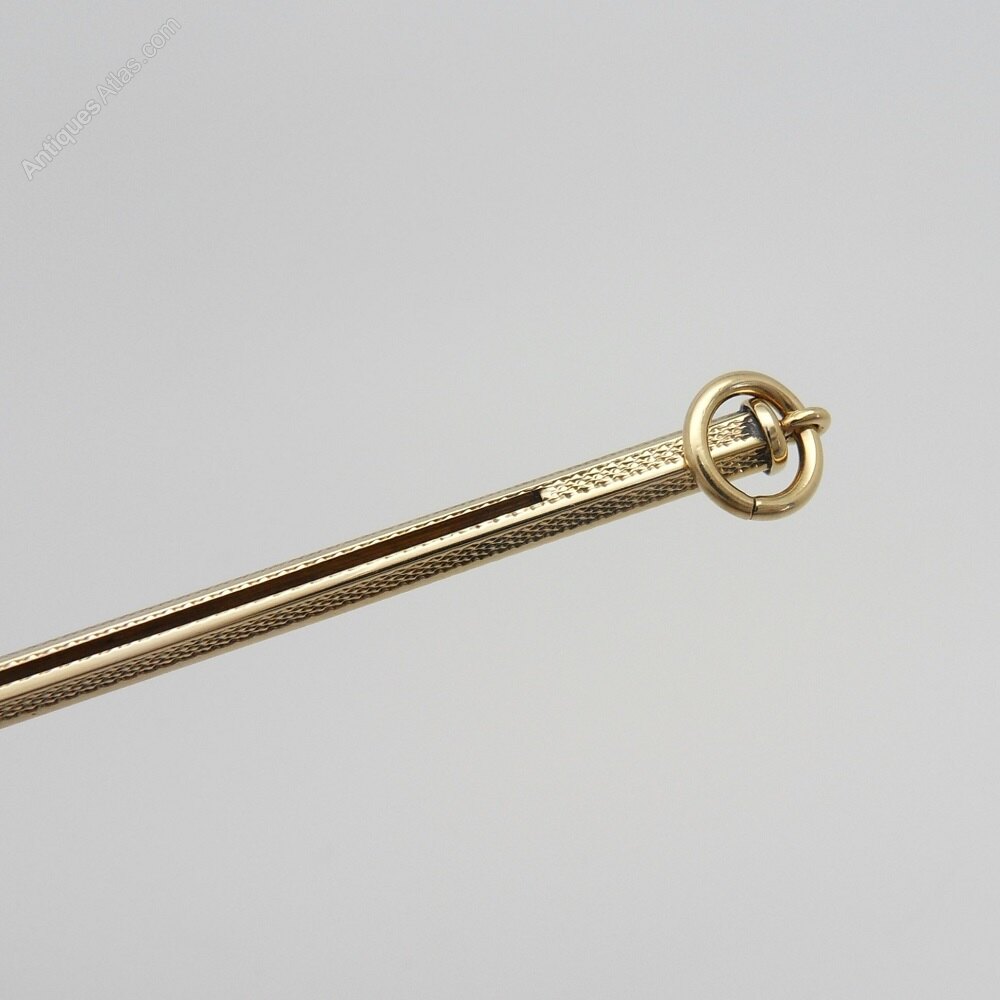 A super, vintage 9ct gold champagne / cocktail swizzle stick. The swizzle stick is a neat design with engine turned pattern, and works with a sliding action. It is fully hallmarked Birmingham 1979 and bears the makers mark: S J Rose & Son.