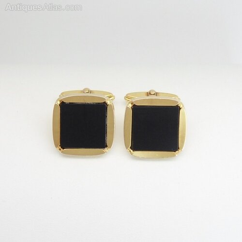 9ct gold onyx cufflinks Marked W. Germany. 1974