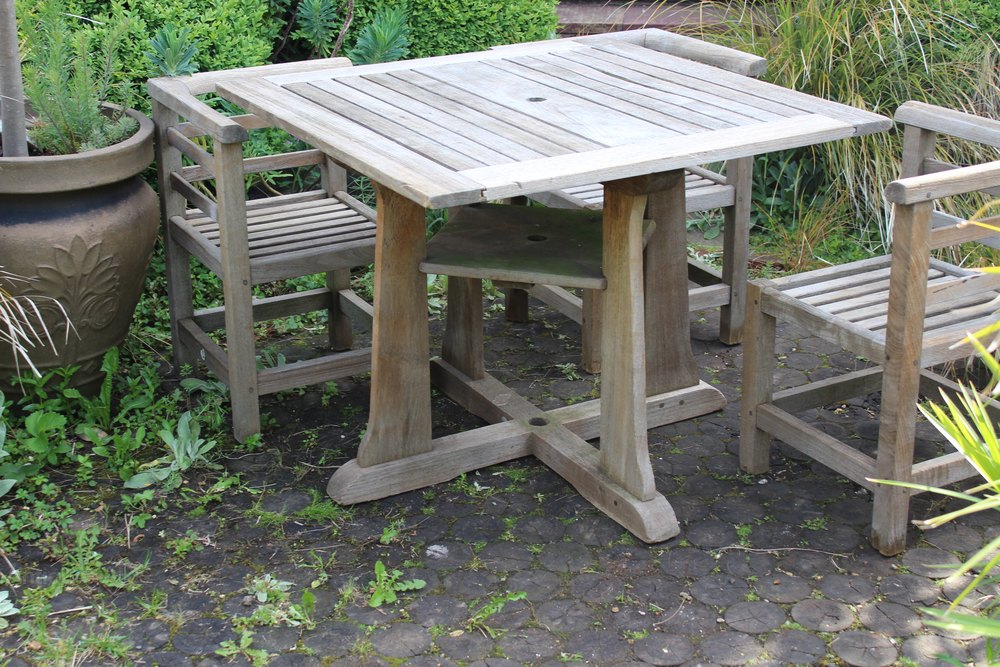 Condition chairs and table solid . Minor fault with table top reglued piece. some minor saw marks from overzealous handyman but does not detract too much .