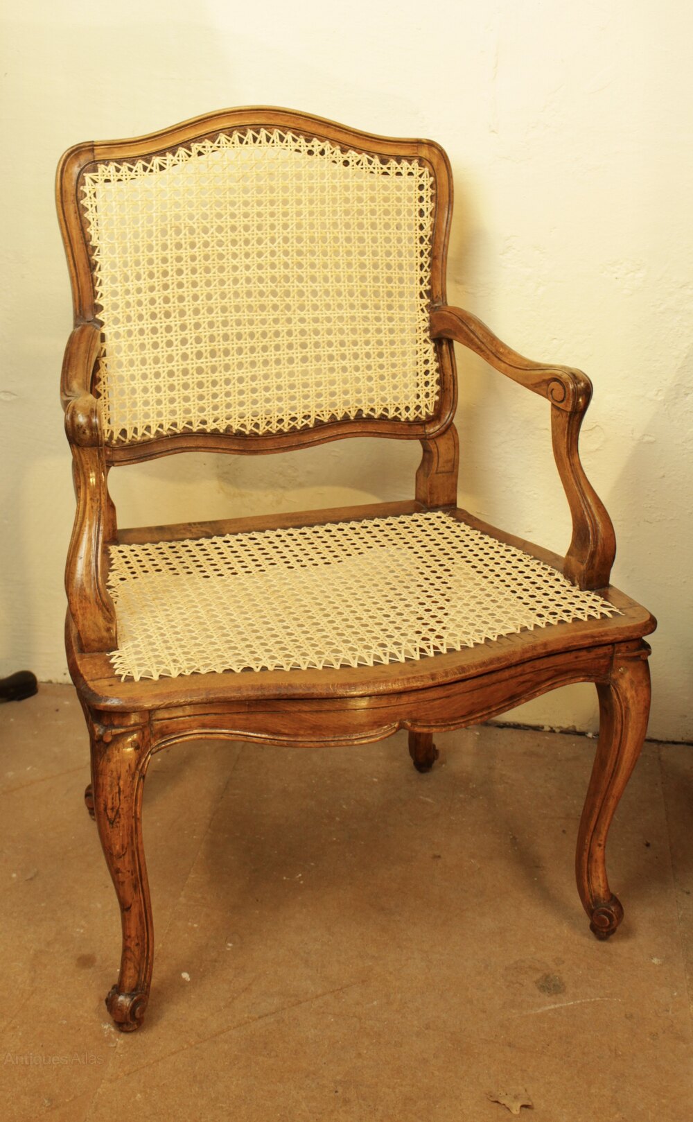 A fine charcaterful 19th century French walnut bergere/caned armchair. It stands on four cabriole legs, and has been recently re-caned. the chair comes with a new swab cushion.