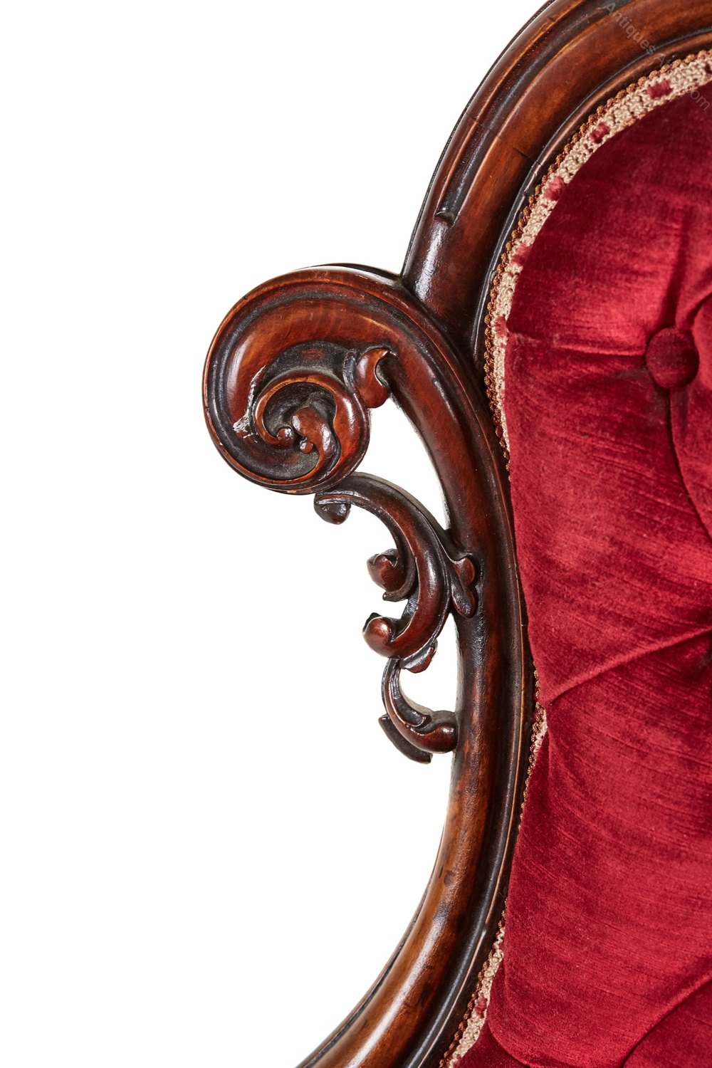 A fine victorian carved walnut armchair,with carved and scrollwork shaped top rail,with lovely downswept arms,rounded seat supported by cabriole legs to the front outswept back legs